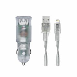 Auto punjač RivaPower VA4225 TD2 Transparent 3,4A / 2xUSB + kabel MFi Lightning 1.2m