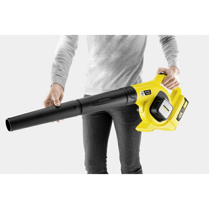 Dobro izbalansirano baterijsko puhalo od 18 volti ergonomski je podesivo u ruci i postiže maksimalnu brzinu od 210 km/h. Uklonjiva ravna mlaznica s rubom za struganje omogućuje kontrolu nad lišćem, kao i otapanje mokrog i tvrdog lišća.