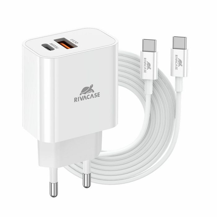 PS4102 WD4RIVACASE PS4192 Power Delivery 20W wall chargerProduct Features:• Type-C & USB wall charger• Power Delivery 20W• Quick Charge 2.0/3.0• Support Huawei FCP, Samsung AFC• FAST charger for iPhone (iPhone 8 and newer)• Outer shell is made of non-flammable and durable plasticSpecifications:• Input: 110 - 240 V, 50-60 Hz.• Output:USB-C 5V 3A, 9V 2.22A, 12V 1.67AUSB-A 5V 3A, 9V 2A, 12V 1.5ASimoultaneously USB-C + USB-A 5V 3A MAXDimensions: 80 ? 42 ? 28 mm.Colour: white.USB-C to USB-C 1 m cable (up to 3A) included