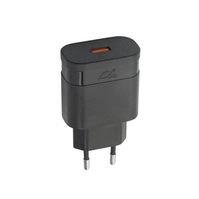 VA4110 B00 RIVAPOWER VA4110 Wall Charger 18W QC 3.0/ 1USB • Universal Wall chargers are compatible with all USB powered mobile devices. • Quick Charge 3.0 technology support • Multiple built-in safeguards protect against over-current, overcharging and overheating for safe and fast charging. • Compact design. • Sanded surface with glossy strip creates superior look, has pleasant touch and provides perfect grip • Outer shell, made of non-flammable and durable plastic, provides exceptional fire and mechanical damage resistance.
