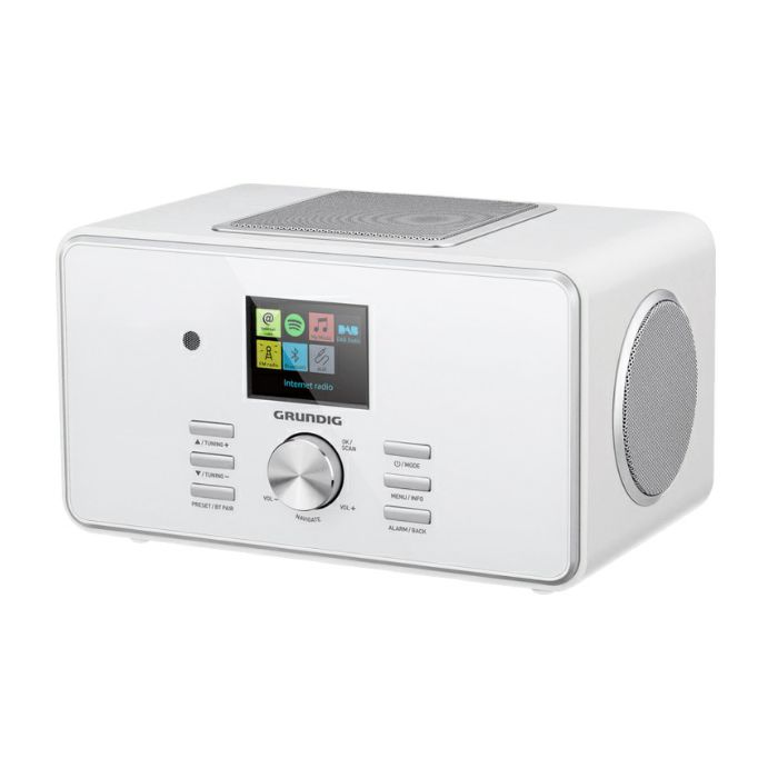 DTR 6000 X bijeli Digitalni radio Grundig Multiroom sustav omogućava sinkroniziranu reprodukciju pjesama s 5 uređaja Internet, Bluetooth, multiroom i DAB+ 2.1 stereo sustav zvučnika (2 x 4W) i integrirani subwoofer (20W) Bluetooth audio prijenos USB priključak Funkcije alarma, stanja mirovanja i odgode AUX ulaz Dimenzije (širina x visina x dubina): 23,5 x 12,8 x 13,5 cm