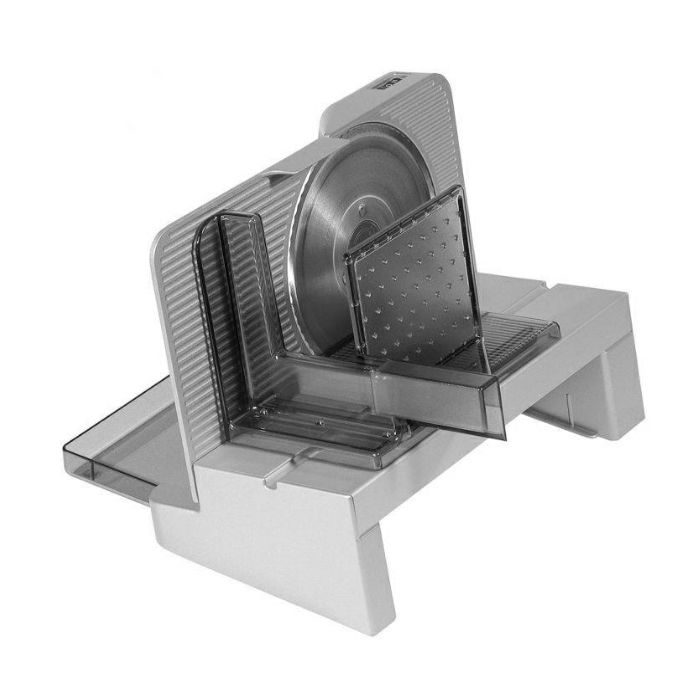 Snaga: 65 W Motor: ECO, 20% manja potrošnja i 50% veća učinkovitost Oštrica: nazubljeni Solingen, promjera 17 cm Podesiva širina rezanja do 20 mm, duljina rezanja cca. 18 cm, opteretni radni ciklus cca. 5 minuta Metalno kućište, PVC ladica, PVC zaštita noževa Sigurnosni gumb za povremeni ili kontinuirani rad, skladištenje kabela, ladica za prikupljanje hrane Dimenzije: 22,5 x 23 x 33,5 cm Težina: 3 kg Boja: nehrđajući čelik/siva