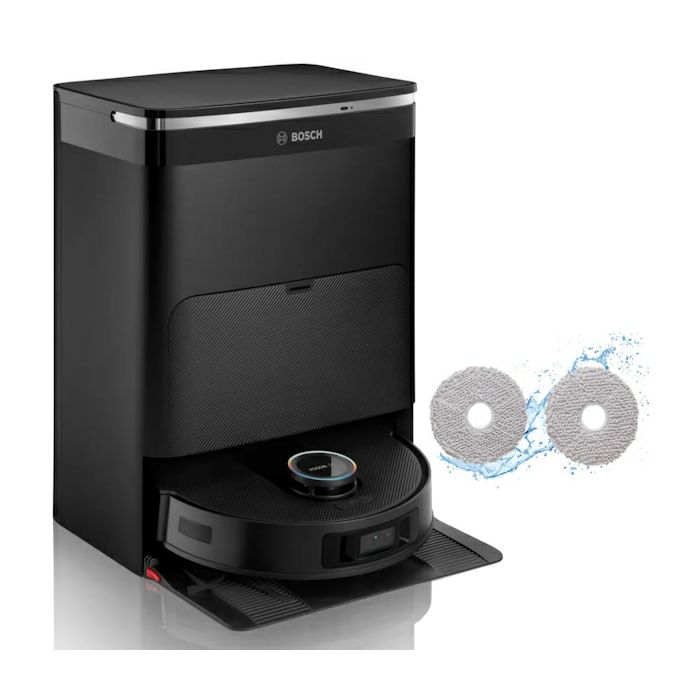Carbon Power Brush: temeljito čišćenje zahvaljujući gusto raspoređenim čekinjama Maksimalni tlak usisavanja: 11.000 Pa. Pruža pouzdano, snažno usisavanje Mop s produženim dosegom: uklanja prljavštinu manju od 2 mm s zidova i 30 mm u kutovima. Navigacija i ponašanje vođeni senzorima: 360° LiDAR navigacija, odbojnik, detekcija tepiha, senzor za praćenje zida Smart Vision kamera i strukturirana svjetlost: za preciznu navigaciju i neprekidno čišćenje. Njemački standardi kvalitete – Izdržljivost: za pouzdan i dugotrajan učinak čišćenja kojem možete vjerovati Smanjena funkcija zapetljavanja: sprječava zapetljavanje kose oko četke Usisavanje i brisanje u jednom potezu Robot s klasom filtracije: F9. Filtrira fini prašak, veličina čestica 1 - 10 µm Suho-Mokra Servisna Stanica: punjenje, automatsko pražnjenje prašnog spremnika robota u integriranu vreću za prašinu od 3 l, pranje mopa s vodom zagrijanom do 70°C, sušenje mopa toplim zrakom, automatsko prepoznavanje iznimno prljavih mopova. Dimenzije suho-mokre servisne stanice, uključujući osnovnu ploču (širina/dubina/visina mm): 394 * 443 * 527.5 mm. Bosch Home Connect aplikacija: jednostavno se povezuje s robotom, nudi intuitivne kontrole, jasne obavijesti i korisnički pristupačan sadržaj za podršku Njemački standardi kvalitete općenito (sigurnost podataka): čuva vaše osobne podatke sigurnima Mehanizam za lako čišćenje karbonske četke: odvojivi nastavak za jednostavno uklanjanje zapetljanih predmeta Intuitivna interakcija: glasovne obavijesti putem zvučnika Veličina prašnog spremnika robota: 275 ml. Veličina integriranog spremnika za vodu: 55 ml. Dimenzije robota (širina/dubina/visina mm): 353 * 351 * 99 mm.