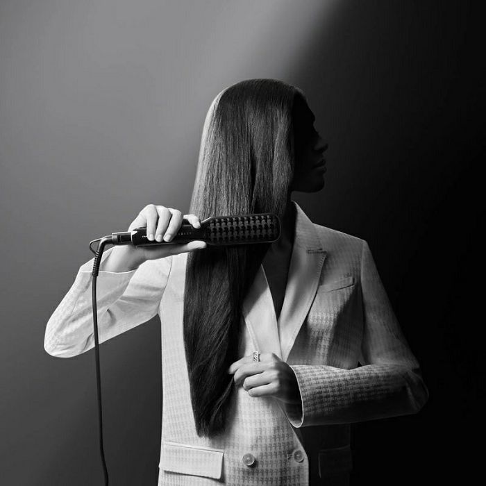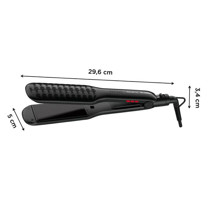 Savršeno ravnanje kose u tren oka s peglom za kosu Rowenta x KARL LARGERFELD Extra Liss. Njegove velike plutajuće ploče prilagođavaju se debljini pramenova za brzo i jednostavno ravnanje – čak i na gustoj, dugoj kosi. Uživajte u brzom, svestranom oblikovanju prema vašem raspoloženju sa šest postavki visoke topline, funkcijom Straight & Waves i ekskluzivnim premazom Keratin & Glow koji kombinira prokeratin i turmalin za sjajan sjaj bez kovrča.