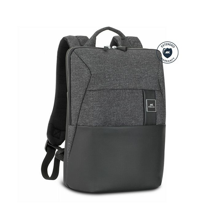 8825 Black MelangeBackpack for MacBook Pro 13 and Ultrabook 13.3Product Features:• Ideal for business trips and traveling.• Manufactured using high-quality faux leather and trendy melange fabric made of durable polyester to protect a Laptop from occasional hits and scratches, as well as from dust and moisture.• Laptop compartment with a waterproof zipper, padded sides and a pocket for a Tablet up to 10 is additionally protected inside with a padded insert on the bottom.• Zippered compartment with a pocket for documents, two zippered pockets and a pocket for a bottle or an umbrella.• Front zippered pocket will store your accessories, powerbanks, business cards, pens and smartphones.• Comfortable soft handle and shoulder straps with softened bands will make you feel comfortable even during the longest journey.• Velcro strap management system fastens excess straps firmly creating another dimension of comfort and safety.