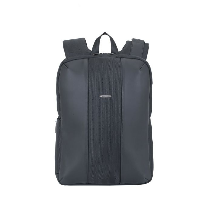 8125 Black14'' Laptop BackpackProduct Features:• Lightweight urban backpack for Laptops up to 14’’• Made of fine herringbone-patterned fabric with rich faux leather inserts• Thickened sides provide extra protection from accidental damage• Laptop compartment, section for documents and a pocket for a Tablet up to 10.1’’• Inner zippered pocket for accessories, documents and a cell phone• Shiny and unique metallic hardware• Special side-pocket for a bottle of water• Strap management system prevents excess strap material from dangling