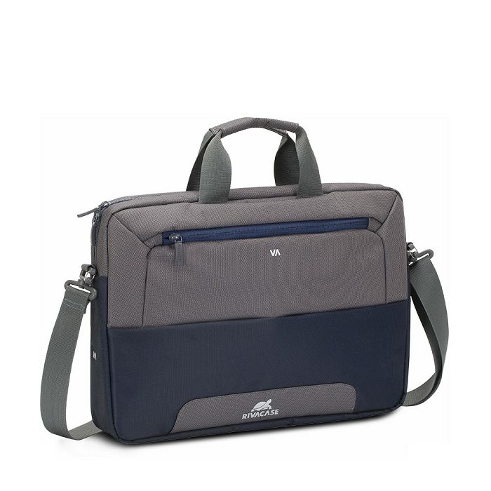 7737 Steel Blue/Grey15.6" Laptop BagProduct Features: • The bag for Laptops up to 15.6" is manufactured of high-quality water-resistant material.• Stylish light reflecting design elements• Two inner compartments for documents, accessories and a section for a Tablet up to 10.1''• Front zipped pocket with a panel for mobile phone, business cards and accessories• Dual zipper pulls for quick and easy access• Converts into a sleeve by tucking handles into hidden pockets• Removable, adjustable strap
