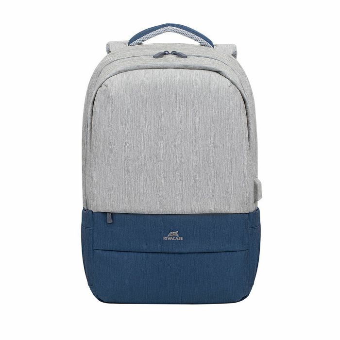 7567 Grey/Dark Blue17.3'' Laptop BackpackProduct Features:• Urban backpack made of high-quality water-repellent fabric with anti-theft protection elements:- Slim compact design with minimal number of visible pockets- Front hidden zippered pocket with an organizer panel perfectly conceals your valuables such as mobile phones, ID card, wallet, etc and keep you away from thieves- Main hidden zippered compartment conceals your gadgets• Spacious zippered compartment with a zippered pocket for documents features two pockets for a powerbank and an umbrella• Plug your portable rechargeable battery into a USB port on the side of the backpack to charge your devices while on the go.• A comfortable soft handle and shoulder straps with softened bands will make you feel comfortable even during the longest journey.• 2 side-pockets for a bottle of water or an umbrella• Strap management system prevents excess strap material from dangling
