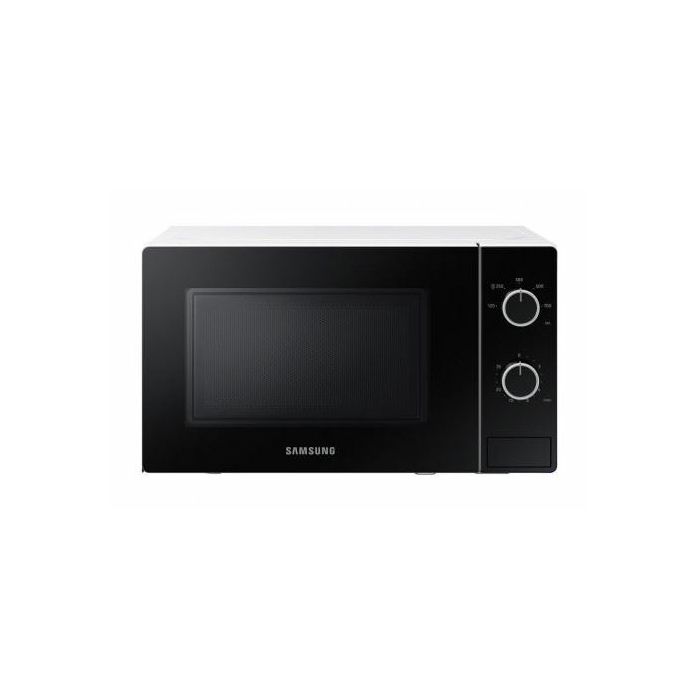 SAMSUNG mikrovalna MS20A3010AH/OL (bijela-crna) s Dual Dial tehnologijom ,postavite vrijeme kuhanja i težinu (u gramima) ili odaberete najbolju postavku snage (u vatima), Full Glass vrata, LED svjetlo, Metallic Edge, Težina: 10,5kg, Jamstvo na uređaj 2 god Ostale karakteristike: Boja: Bijela, Crna