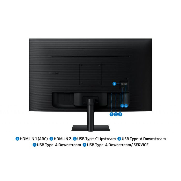 zaslon: 81 cm (32") SMART monitorboja: crnasustav: TIZENrezolucija: 3840 x 2160vrsta zaslona: VAvrijeme odziva: 4 ms (GtG)svjetlina: 300 cd/m2priključak: HDMI 2x, USB Hub, USB-C (65W)sučelje: Bluetooth 5.2, Wifizvučnik: da (10W x 2)postolje: nagibnomontaža na zid: VESA 100x100značajke: Način rada za zaštitu očiju, Game Bar, Gaming Hub, Bixby, Alexa