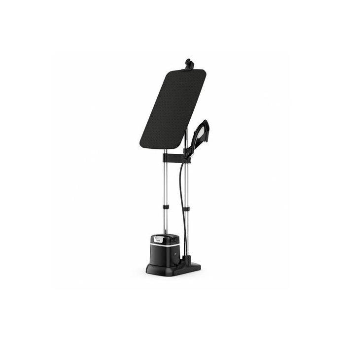Stojeće glačalo za odjeću Prikladno za sve vrste aparata za tkanine Brzo zagrijavanje u 70 sekundi Sa snagom pare uklanja do 99,9% bakterija Ispuštanje pare 90 g / min. za posebno tvrdoglave nabore Odvojivi spremnik za vodu volumena 1 l Mali kotačići za lako kretanje Ugrađena pametna daska s podesivim nagibom za vertikalno ili vodoravno glačanje Uključuje praktične dodatke Precizan vrh olakšava glačanje teško dostupnih mjesta Osnovne karakteristike: Snaga [W]: 2980