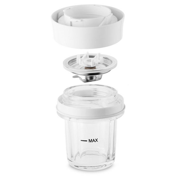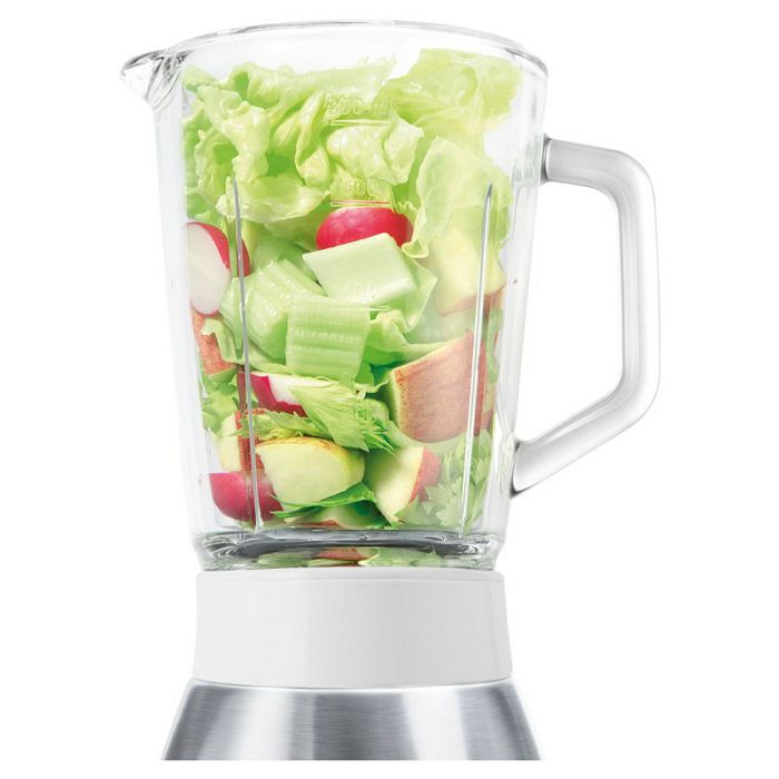 Odličan za pripremu juha, dječje hrane, koktela i druge hraneOštrice su napravljene od visokokvalitetnog nehrđajućeg čelikaOdvojive oštrice za lako održavanjeRupa na poklopcu s otvorom za umetanje i otvorom za doziranjeFunkcija „Pulse” za brzo miješanje i drobljenje kockica ledaDva nastavka oštrica od visokokvalitetnog nehrđajućeg čelika - s dvije i četiri oštriceMali unutarnji prozirni poklopac za dodavanje sastojaka za vrijeme miješanjaProtu klizne nožiceOdvojivi dijelovi sigurni za pranje u perilici posuđaPosuda za miješanje od stakla zapremnine 0,8 lUlazna snaga: 250 W2 razine brzineDuljina kabela napajanja: 90 cm