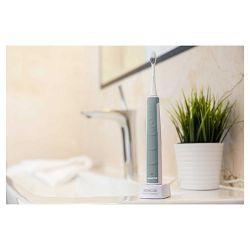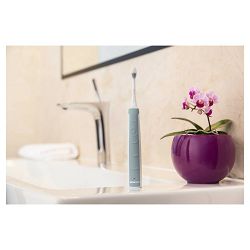 Mogućnost odabira do 10 postavki brzine i tvrdoće Brzina četkanja do 41.000 u minuti Može uklanjati kamenac nekoliko puta bolje od standardnog četkanja zuba Brine o zdravlju vaših desni pomoću posebnih vibracija Inteligentni mjerač vremena će podijeliti četkanje zuba u 4 bloka radi najboljeg čišćenja zahvaljujući tehnologiji Quadpacer LED indikator razine baterije Ergonomski oblikovana ručka jamči udobno rukovanje Iznimno niska potrošnja  Razina zaštite od prodiranja vode IPX7 (zaštita od uranjanja u vodu) Baterija traje do 45 dana uz svakodnevnu upotrebu Zamjenjive glave četkice za zube Magnetska tehnologija prigušivanja zvuka jamči tih rad <65 dB (A) Kompatibilnost diljem svijeta uz 100-240 V omogućuje punjenje bilo gdje u svijetu Uključeni sadržaj: 1 tijelo četkice za zube, 2 osnovne glave, 1 stanica za punjenje sa stalkom, 1 prijenosna kutija Kutija: prikladna za 1 tijelo četkice za zube i 2 glave četkice za zube ili 1 glavu četkice za zube i 1 pastu za zube