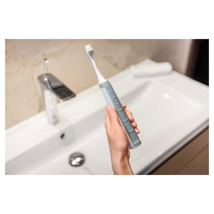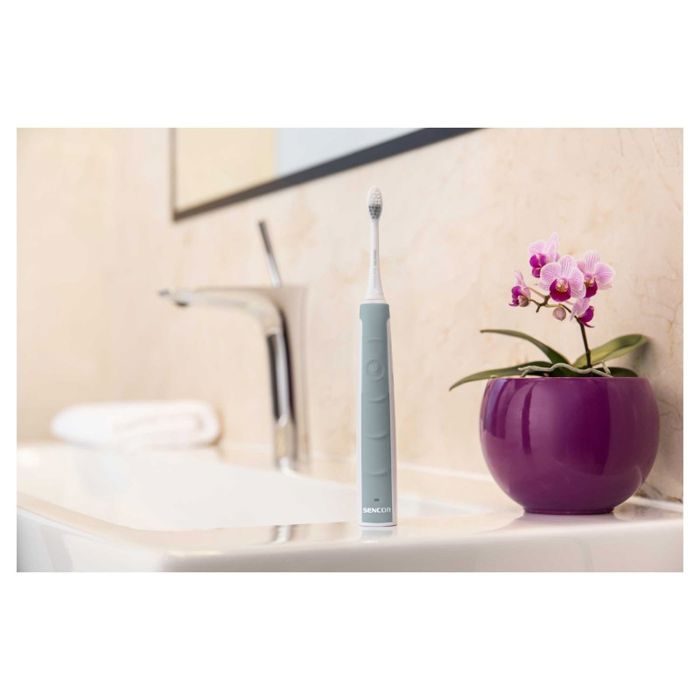 Mogućnost odabira do 10 postavki brzine i tvrdoće Brzina četkanja do 41.000 u minuti Može uklanjati kamenac nekoliko puta bolje od standardnog četkanja zuba Brine o zdravlju vaših desni pomoću posebnih vibracija Inteligentni mjerač vremena će podijeliti četkanje zuba u 4 bloka radi najboljeg čišćenja zahvaljujući tehnologiji Quadpacer LED indikator razine baterije Ergonomski oblikovana ručka jamči udobno rukovanje Iznimno niska potrošnja Razina zaštite od prodiranja vode IPX7 (zaštita od uranjanja u vodu) Baterija traje do 45 dana uz svakodnevnu upotrebu Zamjenjive glave četkice za zube Magnetska tehnologija prigušivanja zvuka jamči tih rad <65 dB (A) Kompatibilnost diljem svijeta uz 100-240 V omogućuje punjenje bilo gdje u svijetu Uključeni sadržaj: 1 tijelo četkice za zube, 2 osnovne glave, 1 stanica za punjenje sa stalkom, 1 prijenosna kutija Kutija: prikladna za 1 tijelo četkice za zube i 2 glave četkice za zube ili 1 glavu četkice za zube i 1 pastu za zube
