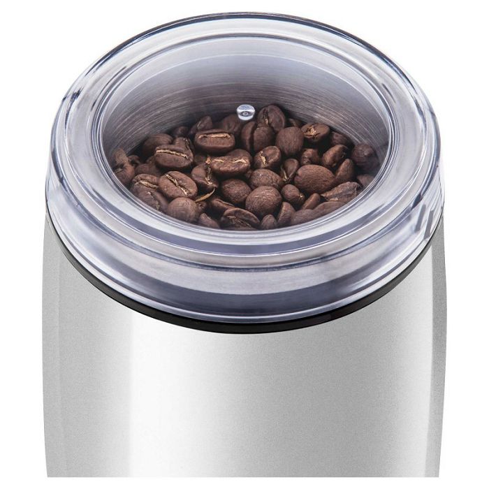 Pogodan za mljevenje zrna kave, oraha, bilja, sjemenki maka i začinaLijevak kapaciteta do 60 grama kave, što je dovoljno za 12 šalica kaveVelika sigurnosna tipka koja osigurava laku upotrebuSigurnosni mehanizam koji sprječava uključivanje mlinca za kavu dok nije zatvorenNožice protiv klizanja za lako i stabilno mljevenjeSpremište kabela za napajanje u postoljuUlazna snaga: 150 WRazina buke: 85 dBDuljina kabela za napajanje: 95 cmDimenzije (širina x duljina x visina): 116 x 116 x 176 mmTežina: 770 gNapon i frekvencija: 220-240 V, 50/60 Hz