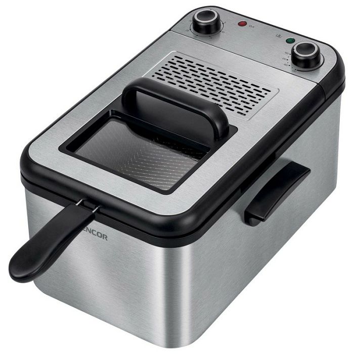 PREDSTAVLJAM SE KAO SENCOR FRITEZA SFR 7200SS Ja sam Sencor friteza SFR 7200SS, koja će vam pripremiti ukusna pržena jela u udobnosti vašeg doma. Koristeći kvalitetno ulje, uvijek znate što jedete. Hranu pripremam ravnomjerno, tako da ima savršen i svjež okus prženog jela. DOPUŠTAM PRAKTIČNO PODEŠAVANJE TERMOSTATA I MJERAČA VREMENA Uživajte u omiljenom obroku bez nepotrebno dugih priprema. Sa mnom ćete uživati u svim prženim jelima, a istovremeno ne morate brinuti o spaljivanju nečega. Na upravljačkoj ploči možete odabrati funkciju mjerača vremena kao i bilo koju temperaturu u rasponu od 130 do 190 °C. Hrskavi pomfrit ili kroketi Prstenovi od luka Ukusne krafne Sočna šnicla Langoši Prženi sir S POSUDOM ZA PRŽENJE KAPACITETA 3,2 L PRIPREMAM DO 1,4 KG DOBRIH STVARI Moja posuda za prženje od 3 l može sadržavati do 1,4 kg hrane. Izrađena je od vrlo kvalitetnog materijala, a možete je čak i oprati u perilici posuđa. Osim toga, imam kompaktan dizajn koji se udobno uklapa čak iu manju kuhinju. ZAHVALJUJUĆI ULAZU SNAGE 2400 W, MOGU BRZO I POUZDANO PRIPREMITI VEČERU Doslovno za nekoliko minuta cijela obitelj će uživati u super obroku! Ulaz snage 2.200 W omogućuje mi da se brzo zagrijem i brzo pržim. Unutarnji spremnik izrađen je od visokokvalitetnog neprijanjajućih materijala, tako da ne morate brinuti o dubokom prženju čak i na višim temperaturama. OSIGURAVAM SIGURAN RAD Zahvaljujući praktičnom poklopcu s vizirom, ne morate brinuti o prekomjernom mirisu pržene hrane, a istovremeno ćete imati cijeli proces prženja pod nadzorom. Osim toga, moje ručke za nošenje savršeno su toplinski izolirane, a sigurnosni osigurač sprječava me od pregrijavanja. Veliki volumen od 3,2 l dovoljan je za do 1,4 kg pomfrita Unutarnji spremnik koji se pere u perilici posuđa Podesivi termostat i mjerač vremena OPIS PROIZVODA Veliki volumen od 3,2 l dovoljan je za do 1,4 kg pomfrita Unutarnji spremnik može se prati u perilici posuđa Podesivi thermostat i tajmer Podesiva temperatura od 130 do 190 °C Podesivi tajmer od 5 do 30 minuta Visokokvalitetni poklopac karoselje od nehrđajućeg čelika s vizirom osigurava potpunu kontrolu nad pripremom hrane Unutarnji spremnik ima visokokvalitetni neprijanjajući premaz Košara za prženje izrađena od visokokvalitetnog kromiranog čelikaPoklopac od nehrđajućeg čelika koji se može ukloniti čini čišćenje mnogo lakšim Integrirana ručka omogućuje jednostavno otvaranje Praktična mehanička kontrola Aluminijski filtar za masnoću Radni svijetli termički izolirane ručke Sigurnosni osigurač protiv pregrijavanja Ima vrlo stabilnu podlogu PRIBOR Kućište friteze Košara za prženje visokokvalitetni kromirani čelikPosuda za prženje Aluminijski filtarOpskrbni kabel TEHNIČKI OPIS Napon: 230 V Frekvencija: 50/60 Hz Ulaz snage: 2200 W Volumen posude za prženje: 3,2 l / 1,4 kg pomfrit Dimenzije (H x W x D): 22 x 26,5 x 36 cm Težina: 3 kg