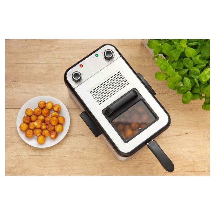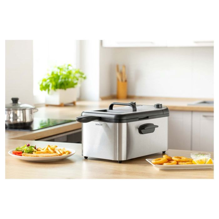 PREDSTAVLJAM SE KAO SENCOR FRITEZA SFR 7200SS Ja sam Sencor friteza SFR 7200SS, koja će vam pripremiti ukusna pržena jela u udobnosti vašeg doma. Koristeći kvalitetno ulje, uvijek znate što jedete. Hranu pripremam ravnomjerno, tako da ima savršen i svjež okus prženog jela. DOPUŠTAM PRAKTIČNO PODEŠAVANJE TERMOSTATA I MJERAČA VREMENA Uživajte u omiljenom obroku bez nepotrebno dugih priprema. Sa mnom ćete uživati u svim prženim jelima, a istovremeno ne morate brinuti o spaljivanju nečega. Na upravljačkoj ploči možete odabrati funkciju mjerača vremena kao i bilo koju temperaturu u rasponu od 130 do 190 °C. Hrskavi pomfrit ili kroketi Prstenovi od luka Ukusne krafne Sočna šnicla Langoši Prženi sir S POSUDOM ZA PRŽENJE KAPACITETA 3,2 L PRIPREMAM DO 1,4 KG DOBRIH STVARI Moja posuda za prženje od 3 l može sadržavati do 1,4 kg hrane. Izrađena je od vrlo kvalitetnog materijala, a možete je čak i oprati u perilici posuđa. Osim toga, imam kompaktan dizajn koji se udobno uklapa čak iu manju kuhinju. ZAHVALJUJUĆI ULAZU SNAGE 2400 W, MOGU BRZO I POUZDANO PRIPREMITI VEČERU Doslovno za nekoliko minuta cijela obitelj će uživati u super obroku! Ulaz snage 2.200 W omogućuje mi da se brzo zagrijem i brzo pržim. Unutarnji spremnik izrađen je od visokokvalitetnog neprijanjajućih materijala, tako da ne morate brinuti o dubokom prženju čak i na višim temperaturama. OSIGURAVAM SIGURAN RAD Zahvaljujući praktičnom poklopcu s vizirom, ne morate brinuti o prekomjernom mirisu pržene hrane, a istovremeno ćete imati cijeli proces prženja pod nadzorom. Osim toga, moje ručke za nošenje savršeno su toplinski izolirane, a sigurnosni osigurač sprječava me od pregrijavanja. Veliki volumen od 3,2 l dovoljan je za do 1,4 kg pomfrita Unutarnji spremnik koji se pere u perilici posuđa Podesivi termostat i mjerač vremena OPIS PROIZVODA Veliki volumen od 3,2 l dovoljan je za do 1,4 kg pomfrita Unutarnji spremnik može se prati u perilici posuđa Podesivi thermostat i tajmer Podesiva temperatura od 130 do 190 °C Podesivi tajmer od 5 do 30 minuta Visokokvalitetni poklopac karoselje od nehrđajućeg čelika s vizirom osigurava potpunu kontrolu nad pripremom hrane Unutarnji spremnik ima visokokvalitetni neprijanjajući premaz Košara za prženje izrađena od visokokvalitetnog kromiranog čelikaPoklopac od nehrđajućeg čelika koji se može ukloniti čini čišćenje mnogo lakšim Integrirana ručka omogućuje jednostavno otvaranje Praktična mehanička kontrola Aluminijski filtar za masnoću Radni svijetli termički izolirane ručke Sigurnosni osigurač protiv pregrijavanja Ima vrlo stabilnu podlogu PRIBOR Kućište friteze Košara za prženje visokokvalitetni kromirani čelikPosuda za prženje Aluminijski filtarOpskrbni kabel TEHNIČKI OPIS Napon: 230 V Frekvencija: 50/60 Hz Ulaz snage: 2200 W Volumen posude za prženje: 3,2 l / 1,4 kg pomfrit Dimenzije (H x W x D): 22 x 26,5 x 36 cm Težina: 3 kg