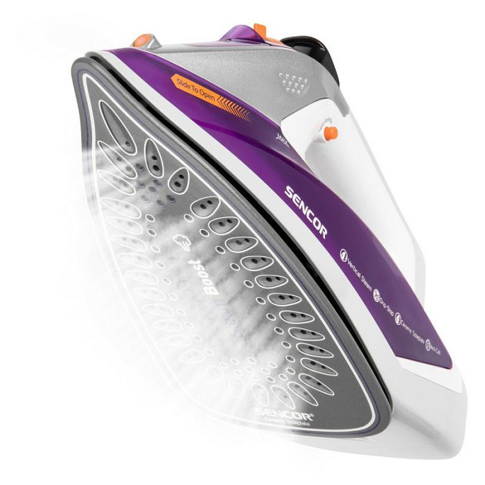 Ulazna snaga 2400 WKeramička površina za glačanjeOdvojivi spremnik za vodu (zapremina 200 ml)Neprekidno upravljanje temperaturomSustav automatskog čišćenja za uklanjanje naslagaSustav koji sprečava nakupljanje naslaga kamenca na otvorima površine za glačanjeFunkcija protiv kapanja za sprečavanje mrlja na tkaninamaMogućnost okomitog isparavanjaPojačanje pareKontinuirana regulacija izlaza pareTipka za prskanjeTermostatSvjetlo indikatora signalizira da se održava zadana temperaturaKraj kabela napajanja ograničava zavrtanje i zaplitanjeSpremnik za punjenje uključenKontinuirano ispuštanje pare: 25 g/minImpulsno ispuštanje pare: 120 g/minDužina kabela napajanja: 3 mDimenzije (dužina × širina × visina): 290 × XXXŠ × 145 mmMasa: 1.2 kg
