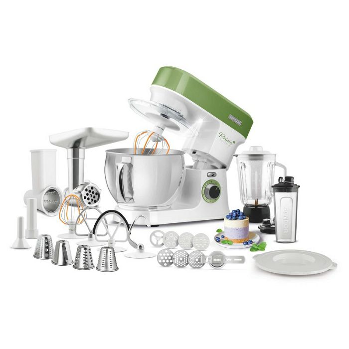 PROCESOR HRANE SENCOR Izvanredno snažan motor od 1200 W za savršene rezultate Iznimno velika posuda od 5 l od nehrđajućeg čelika za sve vrste tijesta (0,8 kg teškog tijesta, 2,2 l laganog tijesta) 6 postavki brzine + funkcija PULS + 2 programa NutriSmart za sve zadatke MIKSER 4 napredna nastavka za miješenje i mućenje Poseban FLEXI nastavak za tučenje i FLEXI mutilica za lagana tijestaJedinstveni magnetski poklopci daju veću praktičnost MIJEŠALICA ZA HRANU Staklenka od 1,5 l Oštrice obložene titanijemNutri usitnjavačPribor NutriBlender s udobnom čašom za pijenje Oštrice obložene titanijem2 jedinstvena programa za usitnjavanje MLINAC ZA MESO grubo i fino mljevenje s nastavcima za punjenje kobasica 3 alata za izradu rezanaca Nastavak za kekse SJECKALICA I USITNJAVAČ 4 nastavka od nehrđajućeg čelika:- Valovito (izbrazdano) sjeckanje- Grubo usitnjavanje / ribanje- Fino usitnjavanje / ribanje- Ribež za tvrdi sir i orašaste plodove