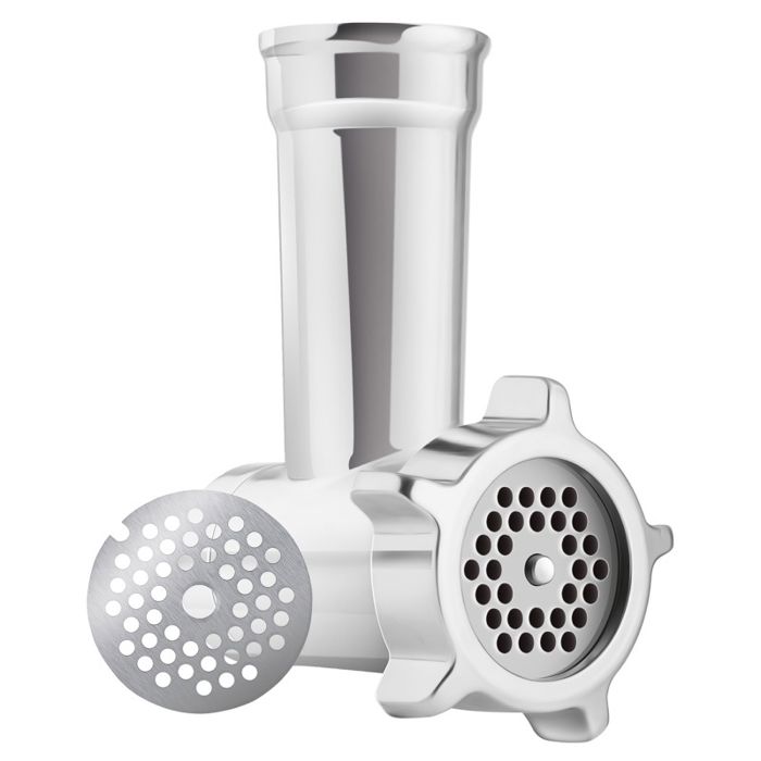 PROCESOR HRANE SENCOR   Snažan motor od 1 000 W s jamstvom 6 godina Robusno tijelo u cijelosti od metala i s metalnim zupčanicima Dizajn s 3 glavčine Sencor pametna snaga i energija - za optimalnu brzinu Regulator brzine s blagim započinjanjem i 8 razina brzine Impulsna funkcija LED rasvjeta posude za sjeckanje Posuda od nehrđajućeg čelika veličine 4,5 litara i mjernom ljestvicom Proziran poklopac posude s dovodnom cijevi za jednostavno dodavanja sastojaka tijekom sjeckanja Plastičan poklopac za skladištenje posude od nehrđajućeg čelika Planetarni sustav miješanje, sjeckanja i tučenja - osigurava potpunu nasjeckanost cjelokupnog sadržaja posude - nastavci simultano rotiraju oko svojih vlastitih osi, kao i oko osi motora - omogućuje obradu 100% sadržaj posude, jamči savršeno sjeckanje sastojaka Bajunetni sustav postavljanja nastavaka omogućuje brzo sklapanja i zamjenu Osiguravajuća blokada u gornjem položaju nagibnog kraka Staklena posuda za sjeckanje veličine 1,5 litara Aparat za mljevenje mesa za fino i grubo mljevenje 3 nastavka za miješanje, sjeckanje i tučenje - oštrica za miješanje, mlatilica A-profila, pjenjača za tučenje Specijalna FLEXI mlatilica za miješanje, pogodna za fina tijesta Punilica kobasica s 2 promjera Izrađivač kolača Tuče do 8 bjelanjaka