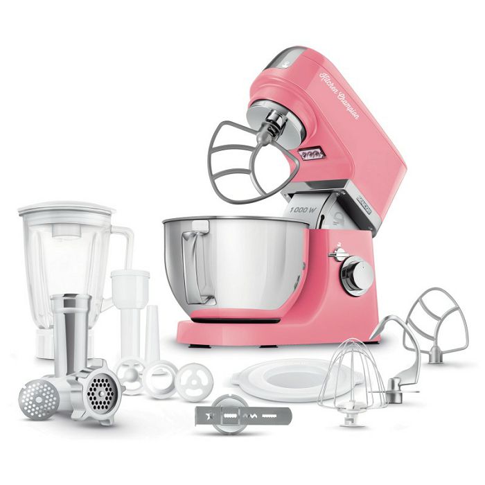 PROCESOR HRANE SENCOR   Snažan motor od 1 000 W s jamstvom 6 godina Robusno tijelo u cijelosti od metala i s metalnim zupčanicima Dizajn s 3 glavčine Sencor pametna snaga i energija - za optimalnu brzinu Regulator brzine s blagim započinjanjem i 8 razina brzine Impulsna funkcija LED rasvjeta posude za sjeckanje Posuda od nehrđajućeg čelika veličine 4,5 litara i mjernom ljestvicom Proziran poklopac posude s dovodnom cijevi za jednostavno dodavanja sastojaka tijekom sjeckanja Plastičan poklopac za skladištenje posude od nehrđajućeg čelika Planetarni sustav miješanje, sjeckanja i tučenja - osigurava potpunu nasjeckanost cjelokupnog sadržaja posude - nastavci simultano rotiraju oko svojih vlastitih osi, kao i oko osi motora - omogućuje obradu 100% sadržaj posude, jamči savršeno sjeckanje sastojaka Bajunetni sustav postavljanja nastavaka omogućuje brzo sklapanja i zamjenu Osiguravajuća blokada u gornjem položaju nagibnog kraka Staklena posuda za sjeckanje veličine 1,5 litara Aparat za mljevenje mesa za fino i grubo mljevenje 3 nastavka za miješanje, sjeckanje i tučenje - oštrica za miješanje, mlatilica A-profila, pjenjača za tučenje Specijalna FLEXI mlatilica za miješanje, pogodna za fina tijesta Punilica kobasica s 2 promjera Izrađivač kolača Tuče do 8 bjelanjaka