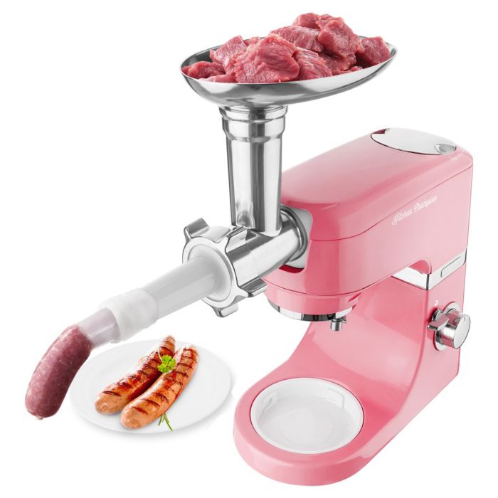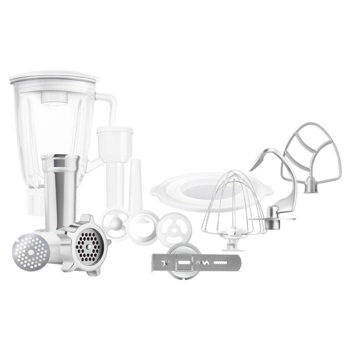 PROCESOR HRANE SENCOR   Snažan motor od 1 000 W s jamstvom 6 godina Robusno tijelo u cijelosti od metala i s metalnim zupčanicima Dizajn s 3 glavčine Sencor pametna snaga i energija - za optimalnu brzinu Regulator brzine s blagim započinjanjem i 8 razina brzine Impulsna funkcija LED rasvjeta posude za sjeckanje Posuda od nehrđajućeg čelika veličine 4,5 litara i mjernom ljestvicom Proziran poklopac posude s dovodnom cijevi za jednostavno dodavanja sastojaka tijekom sjeckanja Plastičan poklopac za skladištenje posude od nehrđajućeg čelika Planetarni sustav miješanje, sjeckanja i tučenja - osigurava potpunu nasjeckanost cjelokupnog sadržaja posude - nastavci simultano rotiraju oko svojih vlastitih osi, kao i oko osi motora - omogućuje obradu 100% sadržaj posude, jamči savršeno sjeckanje sastojaka Bajunetni sustav postavljanja nastavaka omogućuje brzo sklapanja i zamjenu Osiguravajuća blokada u gornjem položaju nagibnog kraka Staklena posuda za sjeckanje veličine 1,5 litara Aparat za mljevenje mesa za fino i grubo mljevenje 3 nastavka za miješanje, sjeckanje i tučenje - oštrica za miješanje, mlatilica A-profila, pjenjača za tučenje Specijalna FLEXI mlatilica za miješanje, pogodna za fina tijesta Punilica kobasica s 2 promjera Izrađivač kolača Tuče do 8 bjelanjaka