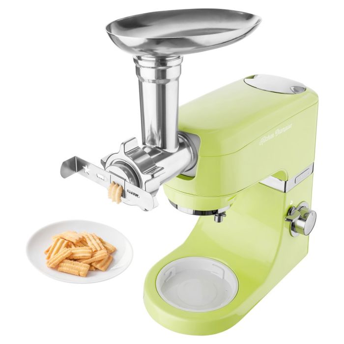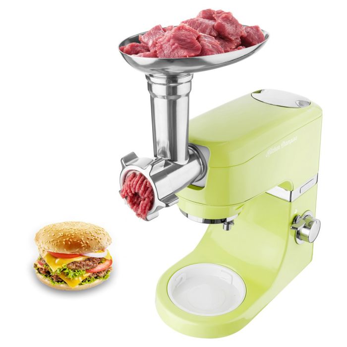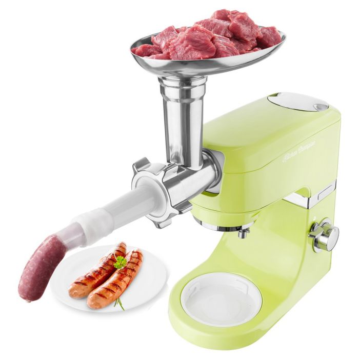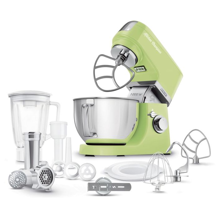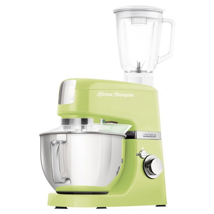 PROCESOR HRANE SENCOR   Snažan motor od 1 000 W s jamstvom 6 godina Robusno tijelo u cijelosti od metala i s metalnim zupčanicima Dizajn s 3 glavčine Sencor pametna snaga i energija - za optimalnu brzinu Regulator brzine s blagim započinjanjem i 8 razina brzine Impulsna funkcija LED rasvjeta posude za sjeckanje Posuda od nehrđajućeg čelika veličine 4,5 litara i mjernom ljestvicom Proziran poklopac posude s dovodnom cijevi za jednostavno dodavanja sastojaka tijekom sjeckanja Plastičan poklopac za skladištenje posude od nehrđajućeg čelika Planetarni sustav miješanje, sjeckanja i tučenja - osigurava potpunu nasjeckanost cjelokupnog sadržaja posude - nastavci simultano rotiraju oko svojih vlastitih osi, kao i oko osi motora - omogućuje obradu 100% sadržaj posude, jamči savršeno sjeckanje sastojaka Bajunetni sustav postavljanja nastavaka omogućuje brzo sklapanja i zamjenu Osiguravajuća blokada u gornjem položaju nagibnog kraka Staklena posuda za sjeckanje veličine 1,5 litara Aparat za mljevenje mesa za fino i grubo mljevenje 3 nastavka za miješanje, sjeckanje i tučenje - oštrica za miješanje, mlatilica A-profila, pjenjača za tučenje Specijalna FLEXI mlatilica za miješanje, pogodna za fina tijesta Punilica kobasica s 2 promjera Izrađivač kolača Tuče do 8 bjelanjaka
