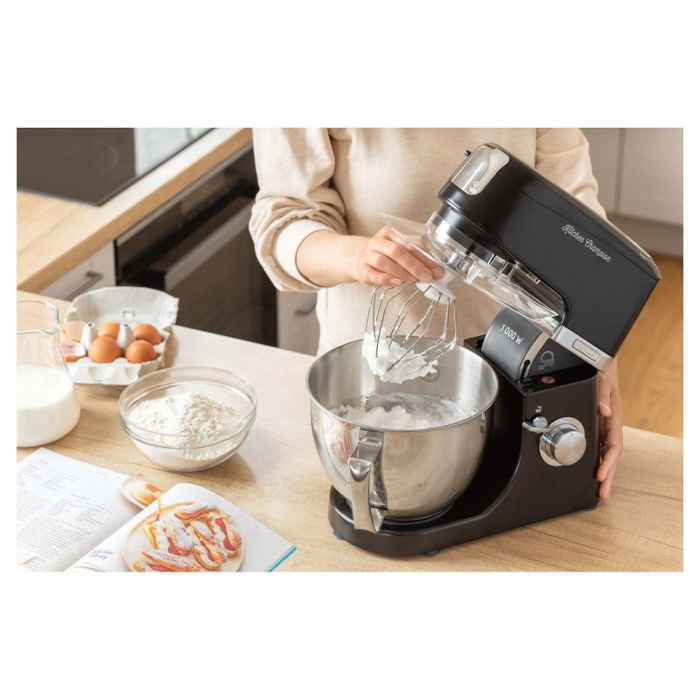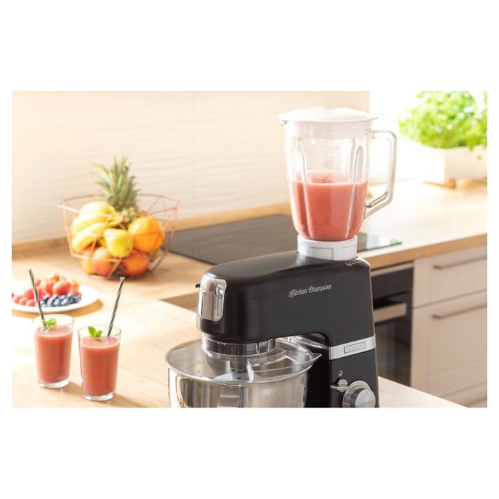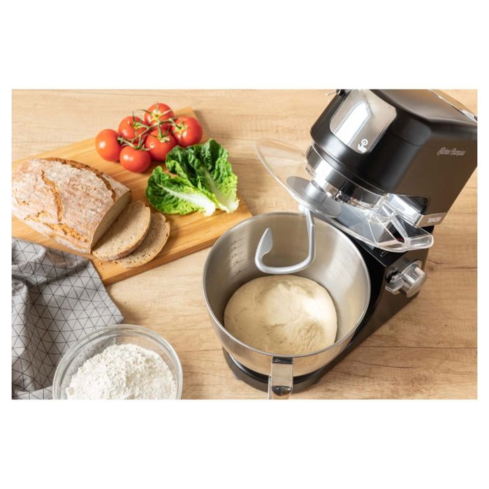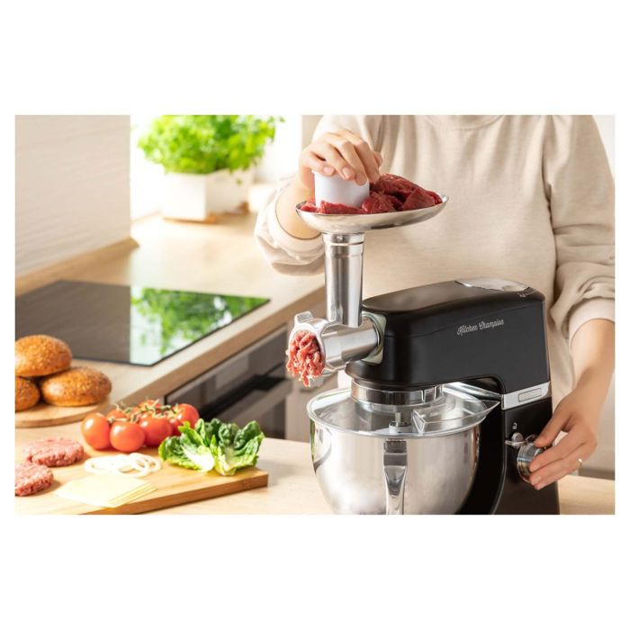 PROCESOR HRANE SENCOR Snažan motor od 1 000 W s jamstvom 6 godina Robusno tijelo u cijelosti od metala i s metalnim zupčanicima Dizajn s 3 glavčine Sencor pametna snaga i energija - za optimalnu brzinu Regulator brzine s blagim započinjanjem i 8 razina brzine Impulsna funkcija LED rasvjeta posude za sjeckanje Posuda od nehrđajućeg čelika veličine 4,5 litara i mjernom ljestvicom Proziran poklopac posude s dovodnom cijevi za jednostavno dodavanja sastojaka tijekom sjeckanja Plastičan poklopac za skladištenje posude od nehrđajućeg čelika Planetarni sustav miješanje, sjeckanja i tučenja - osigurava potpunu nasjeckanost cjelokupnog sadržaja posude - nastavci simultano rotiraju oko svojih vlastitih osi, kao i oko osi motora - omogućuje obradu 100% sadržaj posude, jamči savršeno sjeckanje sastojaka Bajunetni sustav postavljanja nastavaka omogućuje brzo sklapanja i zamjenu Osiguravajuća blokada u gornjem položaju nagibnog kraka Staklena posuda za sjeckanje veličine 1,5 litara Aparat za mljevenje mesa za fino i grubo mljevenje 3 nastavka za miješanje, sjeckanje i tučenje - oštrica za miješanje, mlatilica A-profila, pjenjača za tučenje Specijalna FLEXI mlatilica za miješanje, pogodna za fina tijesta Punilica kobasica s 2 promjera Izrađivač kolača Tuče do 8 bjelanjaka Kapacitet posude 4,5 kg