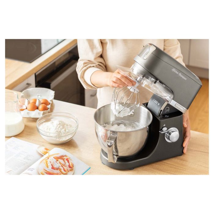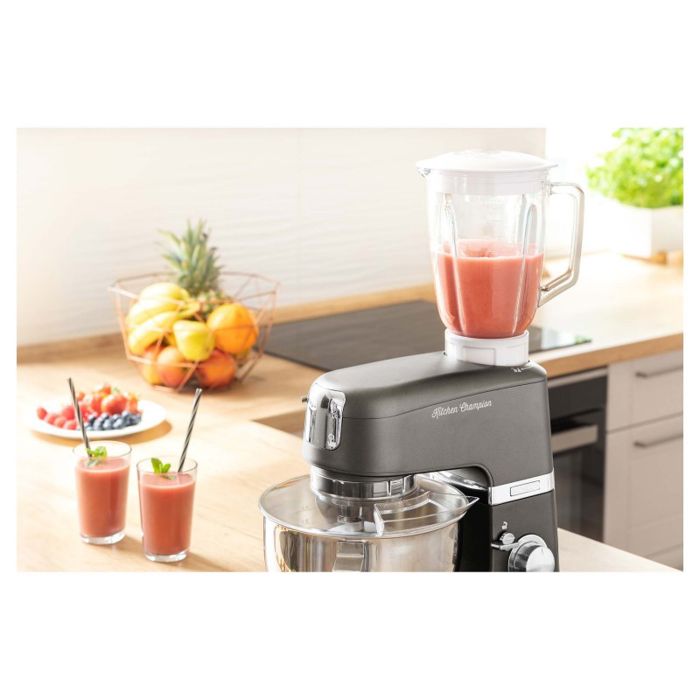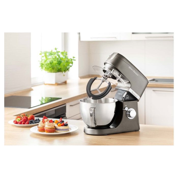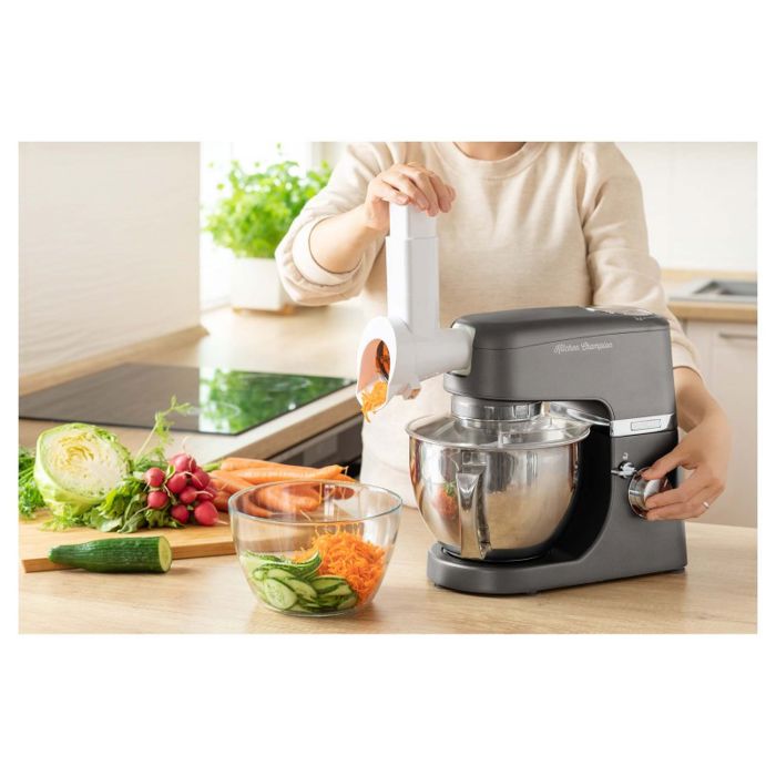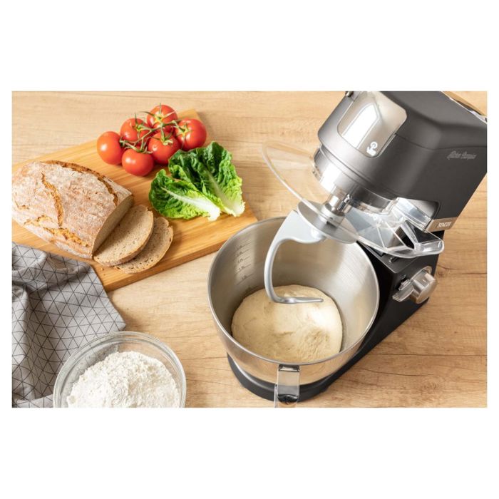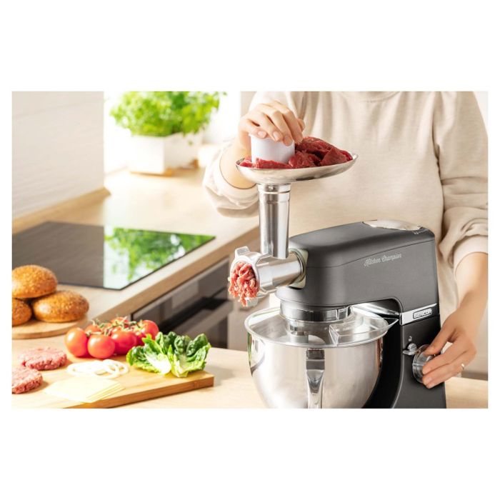 PROCESOR HRANE SENCOR Izuzetno snažan motor od 1000 W sa 6 godina jamstva Robusno tijelo od punog metala s metalnim zupčanicima Dizajn s 3 čvorišta Sencor Smart Power & Energy – za optimalnu brzinu Promjenjiva kontrola brzine s glatkim startom i 8 stupnjeva brzine Pulsna funkcija LED svjetlo posude za miješanje Posuda od nehrđajućeg čelika od 4,5 litre s mjernom vagom Prozirni poklopac posude s cijevi za punjenje za jednostavno dodavanje sastojaka tijekom miješanja Plastični poklopac za odlaganje posude od nehrđajućeg čelika SUSTAV PLANETARNOG MJEŠENJA, MJEŠENJA I BIČENJA - osigurava da se sav sadržaj u posudi potpuno izmiješa - priključci se istovremeno rotiraju oko svoje osi kao i oko osi mjenjača - omogućuje obradu 100% sadržaja posude, jamči savršeno miješanje sastojaka Sustav montaže bajonetnog priključka omogućuje brzu montažu i zamjenu Odvojiva posuda i pribor za jednostavno pranje čak i u perilici posuđa Sigurnost za zaključavanje u gornjem položaju nagibne ruke Stakleni vrč od 1,5 litara Mlinac za meso za grubo i fino mljevenje 3 NASTAVKA ZA MJEŠANJE TIJESTA - oštrica za mijesenje, mješalica u obliku slova A, metlica za mućenje u obliku balona POSEBNA FLEXI MJESILICA ZA FINO TIJESTO 5 izmjenjivih nastavaka za savršene rezultate - valovito (sljemensko) rezanje - Tanko rezanje - Grubo usitnjavanje/ ribanje - Fino usitnjavanje / ribanje - Rendaka za tvrdi sir i orahe Punjač za kobasice u 2 promjera Aparat za kolačiće Umutiti do 8 bjelanjaka