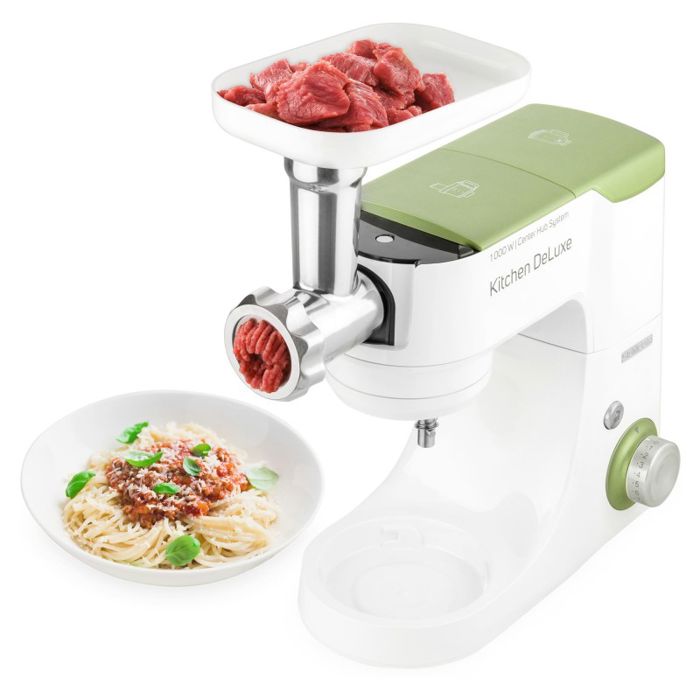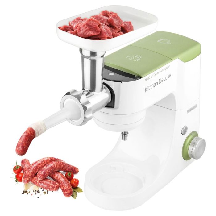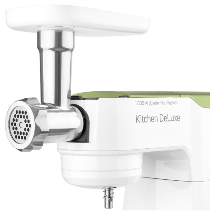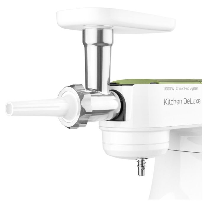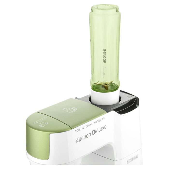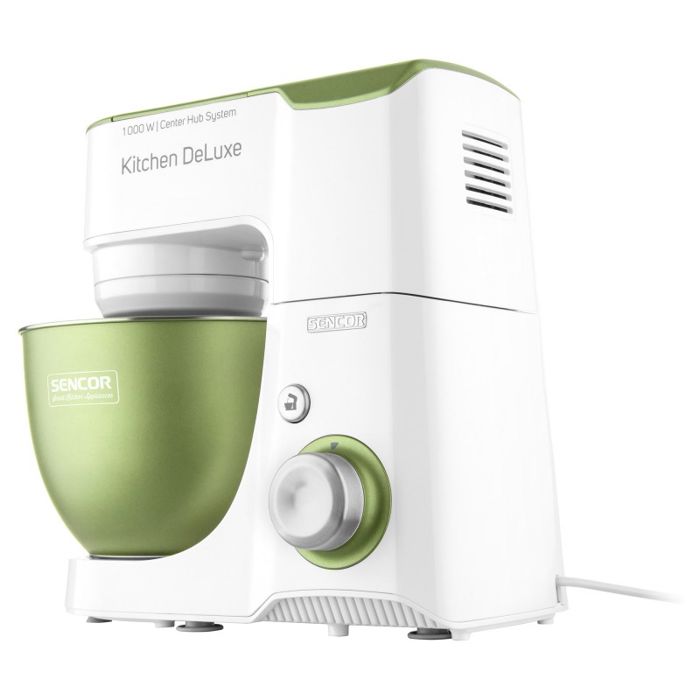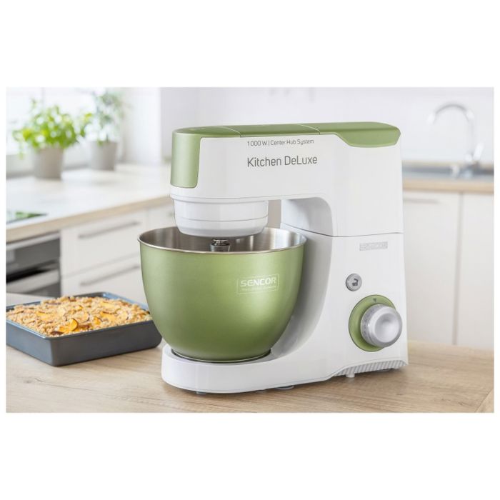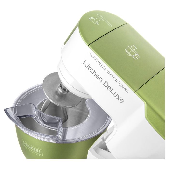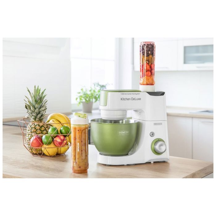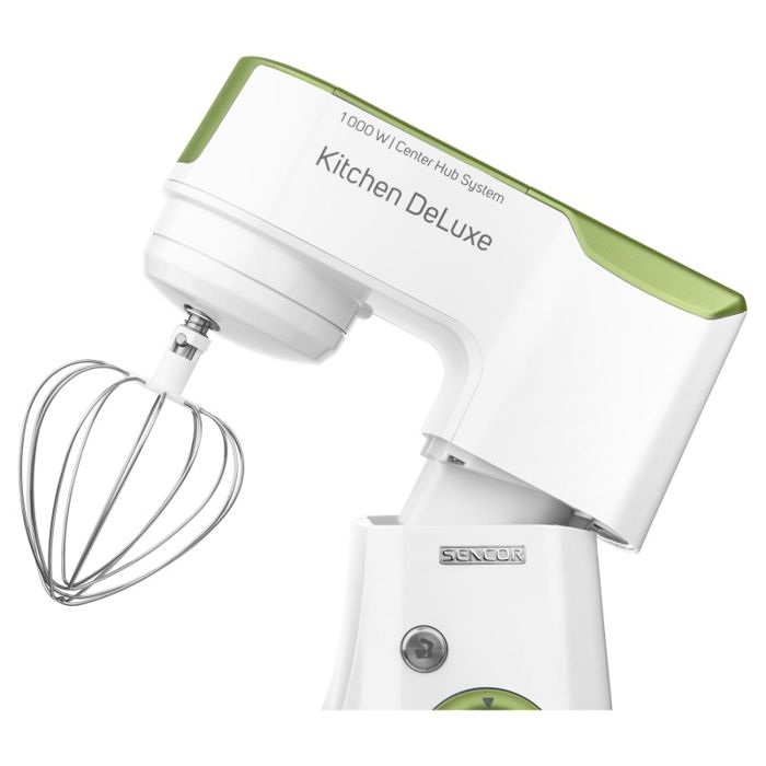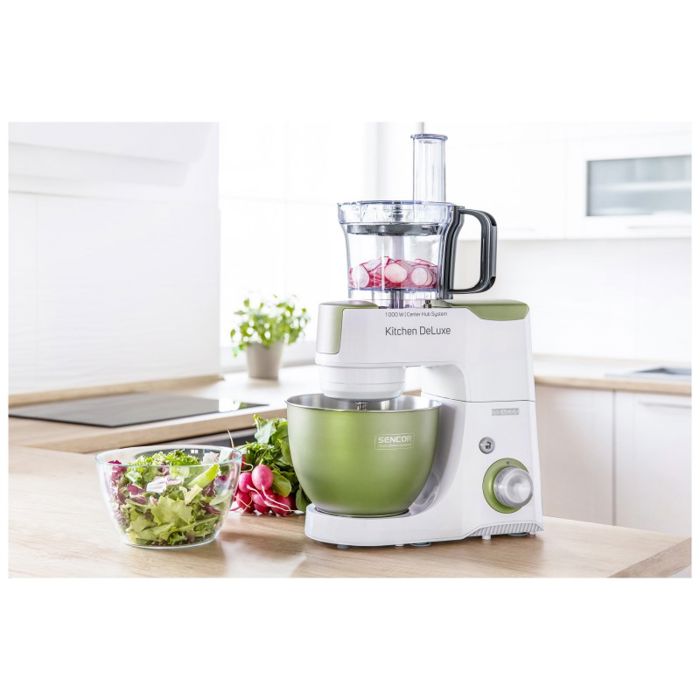 Izvanredno snažan motor od 1000 W sa 4 glavčine Aparat za salatu sa svim funkcijama štapne miješalice Sencor pametna distribucija napajanja i energije - za optimalnu brzinu Varijabilna regulacija brzine s postupnim pokretanjem i 8 razina brzine Funkcija impulsa Proziran poklopac zdjele s cijevi za umetanje omogućuje lako dodavanje sastojaka u toku miješanja Plastični poklopac zdjela od nehrđajućeg čelika za pohranu Planetarni sustav miješenja, miješanja i tučenja osigurava temeljito usitnjavanje svih sastojaka u zdjeli nastavci se simultano rotiraju oko svoje osi i oko osi kućišta sa zupčanicima omogućuje obradu 100% sastojaka u zdjeli jamči savršeno miješanje sastojaka Bajunetski sustav pričvršćivanja nastavaka omogućuje brzo sklapanje i zamjenu Sigurnosno zaključavanje sklopivog kraka u gornjem položaju 3 nastavka za miješenje, tučenje i lagana tijesta - oštrica za miješenje, nastavak za tučenje u obliku slova A, balonska mutilica Punilica kobasica u 2 promjera 2 tritanske boce s 2 štapića za led Stojeći mikser od 1,25 l s titanijskim oštricama Višefunkcijska miješalica za hranu od 1,25 L sa 4 nastavka i oštricom za sjeckanje Mlinac za meso za grubo i fino mljevenje s nastavcima za punjenje kobasica u 2 promjera Posuda za miješenje od 4,5 l od nehrđajućeg čelika s mjernom skalom Istovremeno tučenje do 12 bjelanjaka