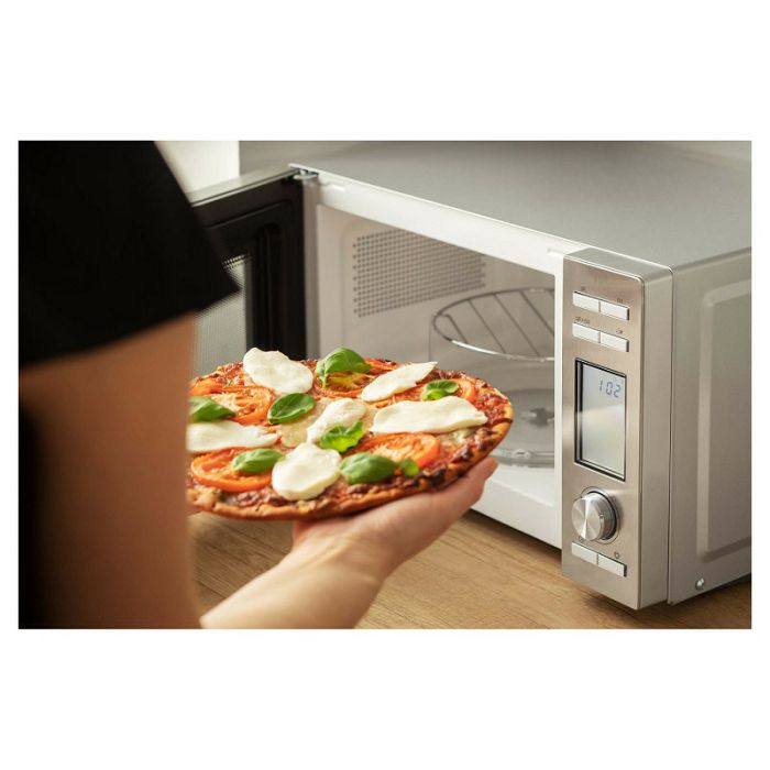 LED ploča s 9 jednostavnih programa + RoštiljNehrđajući čelik koji nikada ne hrđa ili gubi privlačan dizajnMikrovalno grijanje za jednostavno i brzo podgrijavanje i kuhanjeIzdržljiva emajlirana unutrašnjost za jednostavno čišćenjeVelikog unutarnjeg prostora: Kompatibilan s još većim pločama do 26 cmVolumen 20 l10 Razina mikrovalne pećnice kako bi se zadovoljila svaka potrebna funkcija Odmrzavanja za brzo i higijensko odmrzavanje95-minutni timer Snage 700 WRoštilja 900 WZvučni signal za označavanje kraja programaRotirajuća ploča 245 mmDimenzije (s × h × d): 452 × 262 × 360 mm
