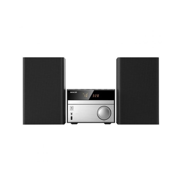 Mikro linija SMC 4300BR - Snažan i bogat zvuk - Premium aluminijski dizajn - Bluetooth - bežični prijenos zvuka Glavne značajke SMC 4300BR SMC 4300BR je mikro sustav s maksimalnom snagom od 30 W uz odličan i čist zvuk. Možete uživati u omiljenoj glazbi putem Blutooth bežične veze s pametnog telefona ili tableta. Ovaj model ima i FM tuner, CD mehanizam, USB priključak ili ulaz od 3,5 mm. Funkcija Equalizer omogućuje vam postavljanje basa i visokih tonova za bolji zvuk igranja žanra. Također je uključen i daljinski upravljač za lakši rad. Maksimalna snaga 30 W Snažan, impresivan zvuk Premium aluminijski dizajn zvuk: Izlazna snaga: 2 × 15 W (impedancija: 4 Ω) 2 zvučnika Frekvencijski odziv: 84 Hz - 16 kHz Ukupno harmonijsko izobličenje: L / R ≤ 5% (1 KHz) Equalizer Modes: FLAT/ROCK/POP/JAZZ/CLASSIC prikaz: LED zaslon Narančasta boja prijem: FM PLL 87,5 MHz - 108 MHz Pohranjene postaje: 40 (FM) ulazi: Reprodukcija CD / MP3 / CD-R / CD-RW diska Bežični prijenos glazbe putem Bluetootha Reprodukcija s USB-a Ulaz (3,5 mm stereo priključak) ostalo: Funkcija mirovanja Punjenje s USB-a Pribor: Bežični kontroler, baterije, upute za uporabu Napajanje: AC 100-240 V, 50/60 Hz Potrošnja: max 20 W Energetska učinkovitost: <0,5 W Dimenzije (glavne jedinice): 180 × 135 × 245 mm Dimenzije (zvučnici): 155 × 254 × 129 mm Težina: 4,2 kg (ukupno) Boja: crna/srebrna