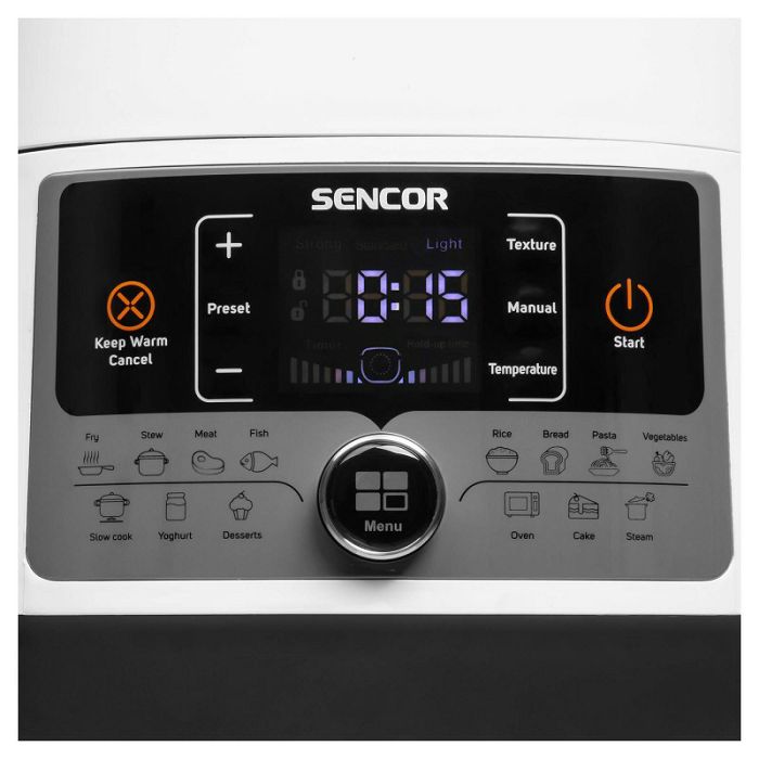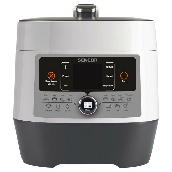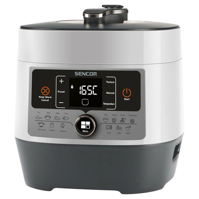 Više ne morate trošiti puno vremena u kuhinji kuhajući i pripremajući sastojke. Sa mnom možete provoditi više vremena sa svojom obitelji ili sami sa aktivnostima koje volite. Ja sam električni multifunkcijski štednjak s pritiskom iz Sencora, koji u svim smjerovima poduzima radnju električnih, plinskih štednjaka i pećnice, a ja sam za 50% brži i učinkovitiji od njih. Uštedjet ću puno vremena uz minimalnu potrošnju energije. Ne morate se više brinuti pripremiti ručkove i večere za cijelu obitelj, glomazan sam i mogu pripremiti ukusna jela za do sedam osoba. Sa mnom ćete otkriti prednosti kuhanja pod pritiskom koje si ne možete priuštiti! SA 14 UNAPRIJED PROGRAMIRANIH PROGRAMA MOGU SE NOSITI S BILO KOJOM TERMIČKOM OBRADOM. Kuham polako i klasično, pržim, pečem, pečem, parim, itd. Mogu se nositi sa svim toplinskim tretmanima gotovo bilo gdje, zahvaljujući mogućnosti ožičenja gdje god vidite ladicu. Nudim 14 pametnih programa u kojima imam unaprijed postavljenu temperaturu, vrijeme i optimalan tlak. Kuham ukusno, zdravo s minimalnom količinom vode, pa čak i bez dodanog ulja! Jela su sočna, puna okusa, mirisa i svih hranjivih sastojaka. Mogu napraviti bezbroj recepata, samo odabrati jedan od programa i to je to! PODESITE TEMPERATURU I VRIJEME PREMA VAŠIM ŽELJAMA. Možete ručno podesiti temperaturu, vrijeme i razinu tlaka, iako mogu raditi automatski s unaprijed postavljenim programima. Prilikom odabira načina jakog, standardnog i laganog svjetla, polako možete prilagoditi dubinu tlaka prema vlastitim željama. IMAM LAKU I JASNU KONTROLU. Ništa od ovoga ne bi bilo moguće bez moje upravljačke ploče koja je savršeno prilagođena za brzo i jednostavno rukovanje u samo nekoliko koraka. Pomoću okretnog gumba možete intuitivno odabrati unaprijed postavljene programe. Svaki program ima svoju LED ikonu slike i uključivanjem regulatora svijetli pojedinačni program. Sve ostale funkcije, temperaturu i vrijeme, možete podesiti LED zaslon, gdje prikazujem sve trenutne podatke o svojim aktivnostima, tako da vi i ja imamo pregled! MOGU KUHATI BEZ VAŠE PRISUTNOSTI. Za većinu mojih programa ne treba mi nikakva pažnja ili vaša prisutnost. Kuham čak i kad ste na poslu ili idete van i želite večeru ili ručak za obitelj kod kuće. Odabirom programa i odgođenim startom ispeći ću super kolač, skuhati umak ili izvrsnu juhu. Kad stignem kući čekat ću s spremnom, ukusnom i mirisnom hranom. Pomoću funkcije Keep Warm hranu automatski držim toplu do osam sati, tako da je možete poslužiti pravo na tanjuru! SENCOR JE STVORIO NIZ KORISNIH DODATAKA PRILAGOĐENIH MENI. U mom paketu naći ćete sve potrebne alate! Skladište ih treba osigurati u bilo kojem loncu, koji također može kampirati ili kuhati na mjestima gdje nema štednjaka zahvaljujući električnom priključku. Zahvaljujući mojim dodacima, možete udobno pariti knedle, miješati hranu, izmjeriti dozu riže ili mahunarki i dobiti spremnu hranu. Ne morate brinuti zbog kompliciranog pranja! Uklonjivi lonac ima visokokvalitetnu površinu protiv ljepljenja koja se lako pere vodom, a pribor za kuhanje može se prati u perilici posuđa. IZUZETNO SAM SIGURAN! · Ja pratim visoke temperature da ne bih spalio hranu · Unutarnji osjetnik temperature automatski podešava intenzitet grijanja · Poklopac štiti od kamenca i jamči sigurno otvaranje · Poklopac ventila za regulaciju pritiska sprječava da se hrana lijepi · Uz pouzdani tajmer, automatski se isključuje nakon odbrojavanja · Poklopac ima pametno zaključavanje koje omogućuje aktiviranje samo kad je zaključano · Moj poklopac je praktičan s termički izoliranom ručicom i izvrsnim brtvljenjem · Sigurnosni ventil za plovku sprječava otvaranje lonca kada u njemu postoji pritisak · Inteligentno pratim stanje unutarnjeg pritiska · Sama održavam siguran pritisak · Ja automatski oslobađam visoki tlak · Dopuštam ručno oslobađanje tlaka iz tlačnog ventila · Garantiram veliku stabilnost MOJE GLAVNE PREDNOSTI · Omogućuje višenamjensku toplinsku obradu s 14 programa · Skraćuje postupak kuhanja za više od polovice · Uključeni su praktični pribor KUHANJE POD VISOKIM PRITISKOM · skraćuje postupak kuhanja za više od polovice · omogućuje kuhanje mahunarki (grah, slanutak itd.) bez namakanja · čuva okus i miris kuhane hrane · štedi energiju kuhanja · omogućuje vam pripremu zdravijih obroka AUTOMATSKO KUHANJE S 14 UNAPRIJED PROGRAMIRANIH PROGRAMA Programi imaju unaprijed postavljeno vrijeme kuhanja, temperaturu i razinu tlaka za rezultate bez napora.Za većinu unaprijed programiranih programa možete slobodno mijenjati vrijeme i temperaturu kuhanja. · prženje · gušenje · meso · riba · Sporo kuhanje · jogurt · deserti · riža · kruh · tjestenina · povrće · pečenje · pite · Kuhanje na pari LONAC IMA NAJBOLJU SIGURNOSNU ZAŠTITU · Prati temperaturu kako bi se spriječilo sagorijevanje hrane · Osjeti unutarnju temperaturu i prilagođava intenzitet grijanja · Poklopac posude štiti od kamenca i jamči sigurno otvaranje · Poklopac ventila za regulaciju pritiska sprječava da se hrana zalijepi kako bi se spriječilo zaglavljivanje · Pouzdan tajmer koji se automatski isključuje nakon odbrojavanja · Poklopac lonca ima pametan sustav zaključavanja koji mu omogućuje spuštanje samo kad je zaključan · Poklopac posude pod tlakom je praktičan s termički izoliranom ručkom i izvrsnim brtvilom · Sigurnosni ventil za plovku sprječava otvaranje lonca kada postoji pritisak · Lonac inteligentno nadgleda stanje unutarnjeg tlaka i, ako taj pritisak nije normalan, pokreće upozorenje · Lonac automatski održava sigurnu vrijednost tlaka · Kad štednjak dosegne granicu tlaka, automatski će otpustiti paru iz privremenih otvora · Lonac omogućuje sigurno uklanjanje tlaka s ventila za smanjenje tlaka · Lonac jamči izvrsnu stabilnost FUNKCIJE I ZNAČAJKE Unutarnji spremnik nonstick volumena 5,5 litaraljepljive površin
