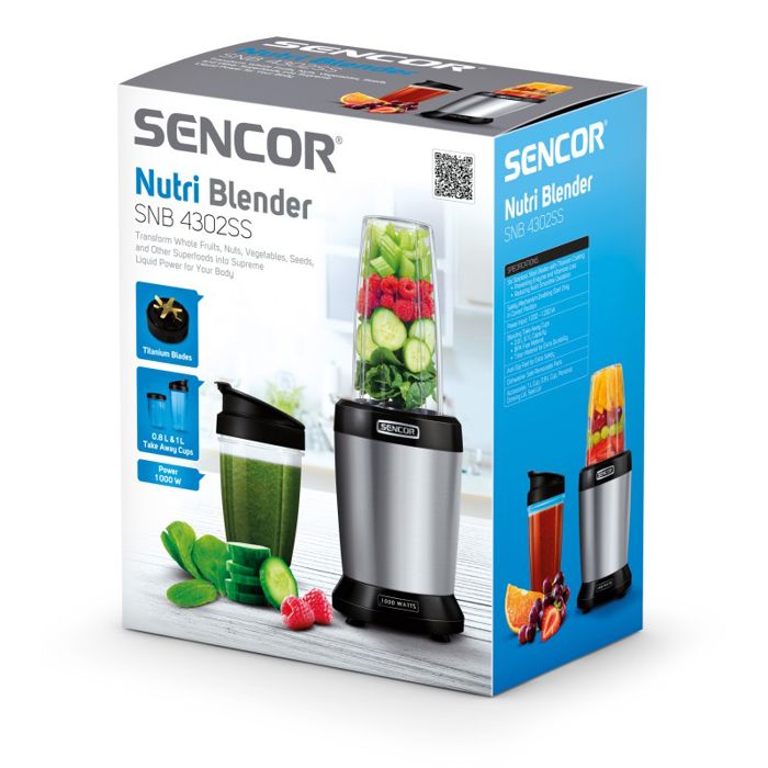Iskoristite hranjivost skrivenu u sjemenkama, žitaricama, orašastim plodovima, te usitnjenom voću i povrćuNutri Smoothie može pomoći u poboljšanju spavanja, probave i nakon oporavka od sportaNutri Smoothie pomaže u obnavljanju vaše tjelesne energije tijekom danaOdličan za pripremu juha, dječje hrane, umaka, koktela i drugih obrokaSigurnosni mehanizam omogućuje pokretanjeŠest odvojivih oštrica od visokokvalitetnog nehrđajućeg čelika s oblogom od titanijaDodaci: čaša zapremnine 1 l, čaša zapremnine 0,8 l, osobni poklopac s grlićem za pijenje, poklopac s brtvomDužina kabela za napajanje: 1,2 mUlazna snaga: 1 000 - 1 200 W220 - 240 V, 50-60 Hz