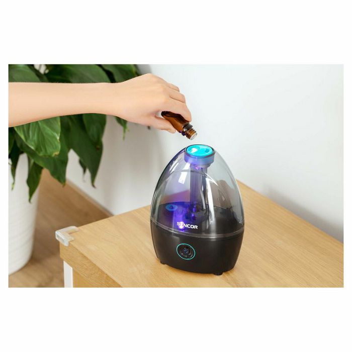 OVLAŽIVAČ ZRAKA Idealno rješenje za prostorije s vrlo suhim i nadražujućim zrakomVlažnost između 40-60 % može smanjiti širenje virusaMogućnost upotrebe esencijalnih ulja za aromaterapiju i opuštanjeRadi na principu visokofrekvencijskog ultrazvučnog oscilatoraStvara hladnu paru (ne utječe na temperaturu prostorije)Izlaz za maglicu s rotacijom od 360° Noćno svjetloPogodno za prostorije do 18 m2Izlaz ovlaživanja: 90 ml/hVolumen spremnika za vodu: 0,9 lUlaz snage: 12 W