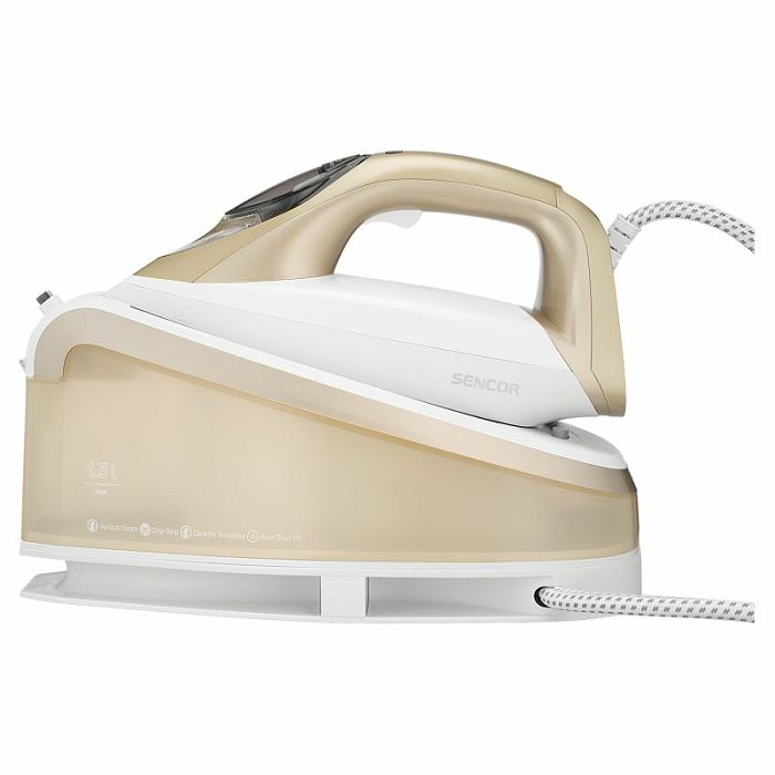 Glačanje pomoću parne stanice do pedeset posto brže nego glačanje sa standardnim glačalom, zahvaljujući velikoj količini pare vrlo je nježna prema tkanini koja se glača, budući da nema spremnika za vodu ručna jedinica je vrlo lagana i udobna za rad Parna stanica je spremna za glačanje unutar 35 minute od uključivanjaSvjetlosni indikator pokazuje spremnost za glačanjeMogućnost okomitog glačanja omogućuje glačanje haljina koje vise na vješaliciPametni zaslon za lako podešavanje intenziteta pare. ECO – za dovoljno ispuštanje pare za standardno glačanje s niskom potrošnjom energije NORMAL - izlaz pare za standardno ili okomito glačanjeIzlaz pare 130 g/minTlak vode od 5,5 baraKapacitet spremnika za vodu 1,5 lMoguće je dopuniti spremnik vodom dok uređaj radi bez gašenjaFunkcija automatskog isključivanja nakon 10 minute mirovanjaSustav Anti-Calc sprječava nakupljanje vodenog kamencaTehnologija Anti-Drip sprječava neželjeno kapanje po odjeći koja se glačaAutomatski senzor dojavljuje kada je potrebno zamijeniti filtar za vodeni kamenacVarijabilna kontrola temperature i pare za optimalne postavke u skladu sa svakom vrstom tkanineKompaktan dizajnTijekom procesa glačanja, glačalo možete odložiti na njegovu podlogu za odlaganje ili na podlogu za odlaganje jedinice postolja Ulazna snaga 2 400 WIzlaz pare: 130 g/minKratko ispuštanje pare: 395 g/minTlak vode od 5,5 baraKeramička površina za glačanjeVrijeme zagrijavanja: 35 sekundiVolumen spremnika za vodu: 1,5 lDimenzije glačala i postolja: 323 x 194 x 60 mmTežina s postoljem: 2,85 kgDimenzije glačala: 275 x 124 x 131 mmTežina bez postolja: 1,5 kg