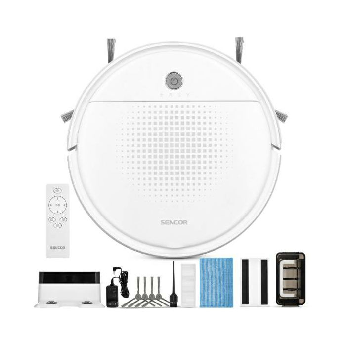Osnovne značajke: Jednostavan rad putem tipke na usisavaču ili daljinskog upravljačaJako tanak i kompaktanSENCOR Smart Room za inteligentno kretanje u prostoruIstovremeno usisavanje i brisanje prašineInteligentni senzori udarca i padaVrijeme rada: do 60 minutaPostaja za punjenje baterija Sadržaj pakiranja: Robotski usisavač s dvije bočne četke i filterimaPostaja za punjenje baterijaNastavci za brisanje poda3× navlake za brisanjeDaljinski upravljač2× AAA baterije2× zamjenske bočne rotacijske četkePrilagodnik napajanja1× zamjenski HEPA filtarČetka za čišćenje
