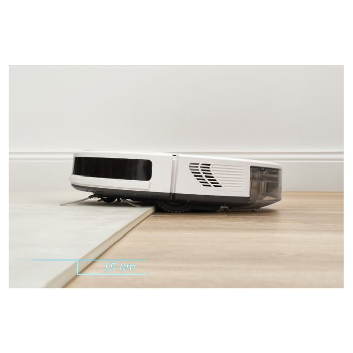 Osnovne značajke: SENCOR Smart Gyro za učinkovito kretanje u prostoruIstovremeno usisavanje i brisanje podaRotirajuće četke i dvije bočne četkeAutomatsko povećanje performansi na tepihuVisina robota od samo 7,5 cm, promjera 31 cmLi-Ion 2.600 mAh baterija (do 100 minuta usisavanja)3 razine usisavanja i 3 razine intenziteta brisanjaRukovanje putem aplikacije SENCOR HOME ili daljinskog upravljačaJednostavno Bluetooth uparivanjeInteligentni senzori udarca i pada Sadržaj pakiranja: robotski usisavač sadrži dvije bočne četke i filtrepostaja za punjenjeprilagodnik napajanjadaljinski upravljačnastavci za brisanje poda3× navlake za brisanje2× AAA baterije2× zamjenske bočne rotacijske četke1× zamjenski HEPA filtar1× zamjenski filtar od pjenastog materijalačetkice za čišćenje