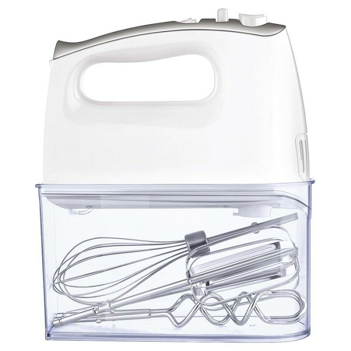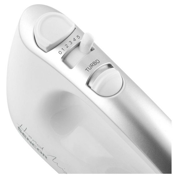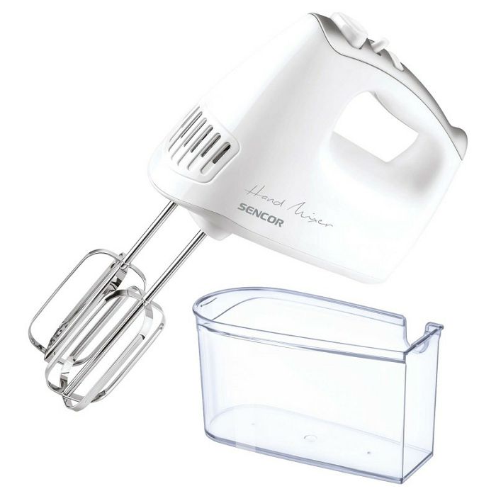 Sencor ručni mikser SHM 5206WH-EUE3 5 razina brzine za sve vrste recepata Turbo tipka za maksimalnu brzinu Kutija za odlaganje za sve privitke · 3 VRSTE PRIVITAKA · Gumb za udobno oslobađanje i uklanjanje privitaka · Tihi rad · · TEHNIČKI PODACI · Toplinski osigurač protiv pregrijavanja · Ulaz: 500W · Dužina kabela za napajanje: 1,2m · Garancija 24 mjeseca