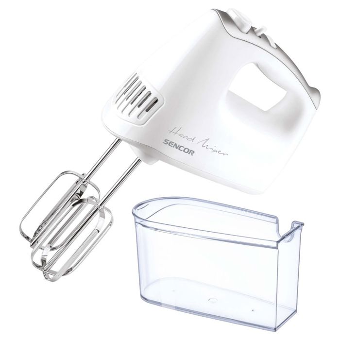 Sencor ručni mikser SHM 5206WH-EUE3 5 razina brzine za sve vrste recepata Turbo tipka za maksimalnu brzinu Kutija za odlaganje za sve privitke · 3 VRSTE PRIVITAKA · Gumb za udobno oslobađanje i uklanjanje privitaka · Tihi rad · · TEHNIČKI PODACI · Toplinski osigurač protiv pregrijavanja · Ulaz: 500W · Dužina kabela za napajanje: 1,2m · Garancija 24 mjeseca