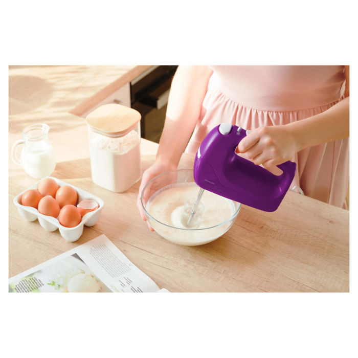 5 razina brzine za sve vrste recepataTurbo gumb za maksimalnu brzinu2 vrste priključaka: Set pjenjača za šlag, kreme, pire krumpir, namaze, bjelanjke i žumanjke Set kuka za miješanje tijesta za gnječenje tijesta Gumb za udobno otpuštanje i uklanjanje priključaka Tihi radErgonomska ručka s gumiranom površinomJednostavno čišćenje (pjenjače i kuke mogu se oprati u perilici posuđa)Toplinski osigurač protiv ulaza za pregrijavanjeSnaga : 200 WDuljina kabela za napajanje: 1,2 m