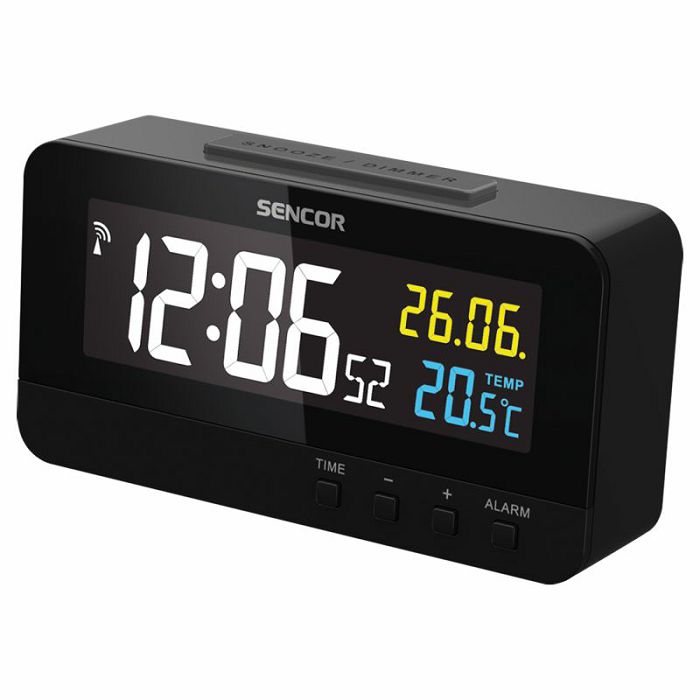 Zaslon u boji dijagonale 3,4" (8,6 cm)3 stupnja svjetline zaslona: visoka / niska / isključenoSat i datum radijski upravljani pomoću signala DCF77 (moguće ručno podešavanje)Prikaz vremena, unutarnje temperature i datumaUnutarnja temperatura (°C/°F)Odabir 12/24-satnog prikaza, kalendarAlarm: buđenje zvučnim signalomFunkcija odgode alarmaDatum i dan u tjednu (dan u tjednu na 8 jezika: EN / IT / ES / DE / FR / NE / DA / RU)Mogućnost upotrebe na radnom stoluPrilagodnik napajanja: DC 4,5 V / 150 mA ( isporučen )Potršnja: 0,45 WPričuvno napajanje baterijom: 1 x CR-2032 3 V ( isporučena )Dimenzije: 105 x 57 x 29 mm ( š / v / d )Masa: 117 g ( s baterijom, bez prilagodnika )