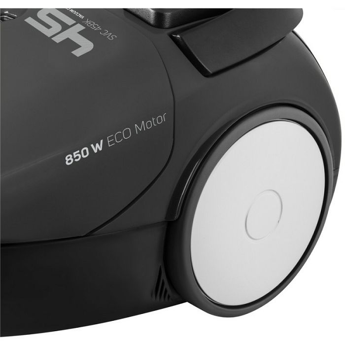Vakuumski usisavač Visoko učinkovit 850W ECO motor Plastična cijev Termostat sprječava pregrijavanje motora 5-stupanjski filtrirni sustav Parkirni položaj za podnu mlaznicu olakšava skladištenje Područje rada je 7,5 m Gumeni kotači olakšavaju putovanje – ne škode podu Samostalno navijanje kabla Indikator napunjenosti prašine u vrećici Kombinirana mlaznica (četka + utor) papirnata vrećica