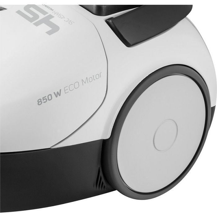 · Vakuumski usisavač · Visoko učinkovit 850W ECO motor · Plastična cijev · Termostat sprječava pregrijavanje motora · 5-stupanjski filtrirni sustav · Parkirni položaj za podnu mlaznicu olakšava skladištenje · Područje rada je 7,5 m · Gumeni kotači olakšavaju putovanje – ne škode podu · Samostalno navijanje kabla · Indikator napunjenosti prašine u vrećici · Kombinirana mlaznica (četka + utor) · papirnata vrećica