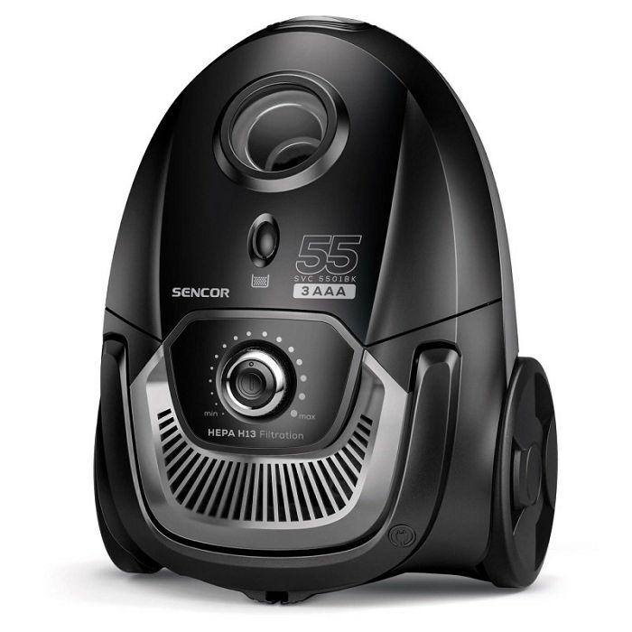 SVC 5501BK 3AAA za izvrsne performanse čišćenja ž HEPA H13 filter osigurava vrhunsku filtraciju pogodnu za osobe koje pate od alergija Tehnologija tišine 75 dB(A) za tiho usisavanjeNajviša klasa energetske učinkovitosti Najviša klasaperformansi čišćenja tvrdog poda Najviša klasa učinkovitosti filtracije Metalna teleskopska cijev za prilagodljivu ergonomsku radnu visinuMikrofiltar koji se može pratiTermostat (termički osigurač) Štiti motor od pregrijavanjaHorizontalno i vertikalno parkiranje za jednostavno skladištenje ili prekide tijekom usisavanja201 m2 Površina pokrivanja za manje promjena Radijus djelovanja električne utičnice8 m (duljina kabela 5 m)Automatski namotaj kabela Elektronička regulacija snage Vrećica za prašinu Puni indikatorUniverzalna podna mlaznica s proširivom četkomIsporučeni pribor: univerzalna podna mlaznica, mlaznica pukotine, mlaznica četke, mlaznicapresvlake 2 l sintetička vrećica za prašinu za bolju filtraciju i higijenske dimenzije odlaganjaprašine (duljina × širina × visina): 350 × 268 × 228 mmTežina: 3,75 kg700 W ECO motor