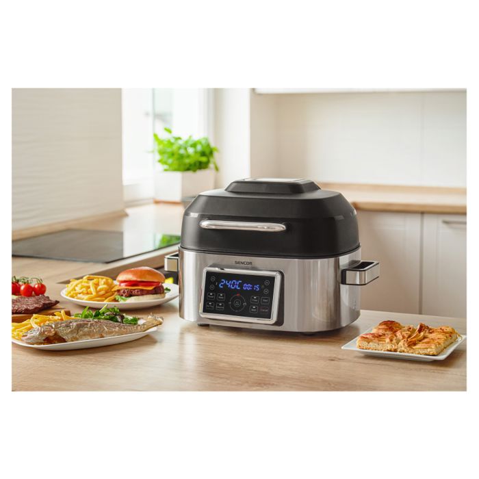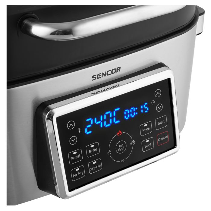 Zapremina 6 lSnaga: 1.660 WLED zaslon s podešavanjem vremena i temperature7 gotovih programa: Roast / Bake/ Air Fry / Dehydrate / Fries / Beef / Air GrillPostavke roštilja: Niska / Srednja / Visoka / Maks. temperaturaTemperaturni raspon 40 °C - 265 °CSustav prženja bez uljaZagrijavanje kruženjem zraka za najbolje rezultateUklonjiva neprianjajuća posuda za jednostavno čišćenjePoklopac hladan na dodirOprema: Košara za prženje / posuda za pečenje