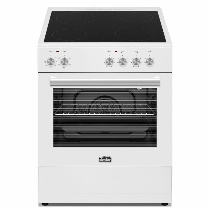 Samostojeći staklokeramički štednjak Simfer 6045 SEDBB odlikuju se četiri Hi-Light ploče za kuhanje dimenzija 2 x ø 14 cm (1,2 kw) i 2 x ø 18 cm (1,8 kw) te pećnicom od 56 litara s pet programa pečenja. Pećnica se može pohvaliti vratima s dvostrukim staklom, kuhanjem uz pomoć ventilatora, rešetkom i pričvršćenom tepsijom za pečenje. Prekrasno dizajnirane tipke u boji nehrđajućeg čelika štednjaku daju moderan izgled, a kombinacija crno-bijele boje elegantno se uklapa u svaku kuhinju. Staklokeramički štednjak 4 zone 2 x Ø 14 cm (1,2 kW), 2 x Ø 18 cm (1,8 kW) funkcije pečenja: 5 kapacitet pećnice: 56 l staklena vrata pećnice (2 stakla) 1 mrežasta rešetka 1 tepsija boja: bijela energetski razred: A dimenzije: 60x60x85 cm