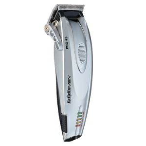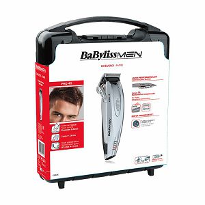 E962E Šišač za kosu BaByliss Iz asortimana profesionalnih proizvoda Elektrokemijski premaz: iznimna oštrina XL oštrice od 45 mm Nehrđajući čelik Pomična oštrica: debljine 0,8 mm Fiksna precizna oštrica: debljine 4 mm Profesionalan motor Rad motora: postepena regulacija za garantirane rezultate čak i na gustoj kosi Preciznost od 0,6 mm 8 vodilica za češalj: 3-25 mm Ugrađeni kontrolni kotačić za preciznost 1 vodilica za bradu: 0,5 do 3 mm Bežična i upotreba na struju: 40 min rada Brzo punjenje: 30 min punjenja za 10 min rada LED: indikator rada Četka za čišćenje, ulje, kukica za čišćenje, škarice, češalj