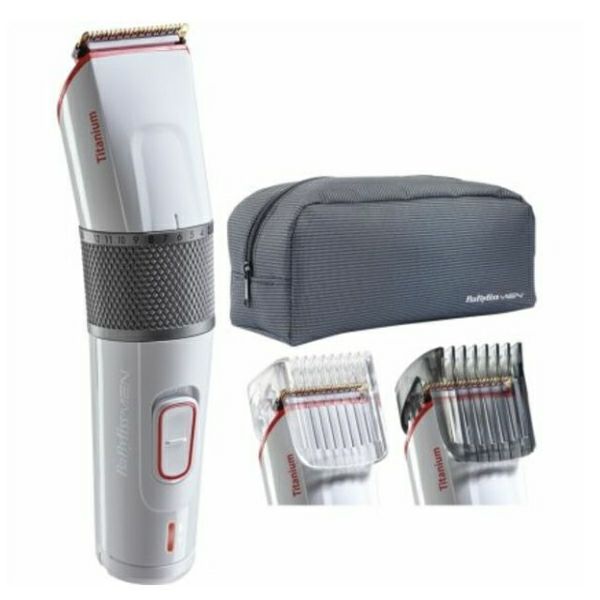Šišač za kosu i bradu Babyliss E971E Iznimno velike oštrice od nehrđajućeg čelika od 40 mm Pomične oštrice: debljine 1 mm Fiksne oštrice: 4 mm debljine Profesionalni motor visokih performansi Jednostavno podešavanje i veliki izbor dužina šišanja Vodilica za precizno šišanje brade Za šišanje i oblikovanje svih stilova brada Precizno podešavanje visine rezanja s 25 pozicija Bežična i upotreba na struju: 60 min rada