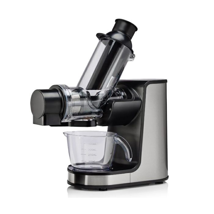 Materijal cjedila: nehrđajući čelik Snaga motora (maks): 200 W Broj okretaja (max-min): 80 okr/min Zapremina posude za sok: 0.4 l Zapremina posude za pulpu: 0.6 l Slow juicer - tiskanje pužem Doziranje cijelih plodova Jednostavno čišćenje Automatsko izbacivanje pulpe Sustav protiv kapanja Dvosmjerna rotacija za bolju učinkovitost Četka za jednostavno čišćenje Vakumske nogice za potpunu stabilnost Dužina priključnog kabela: 1200 mm Širina proizvoda: 340 mm Visina proizvoda: 400 mm Dubina proizvoda: 125 mm Neto težina proizvoda: 3.3 kg